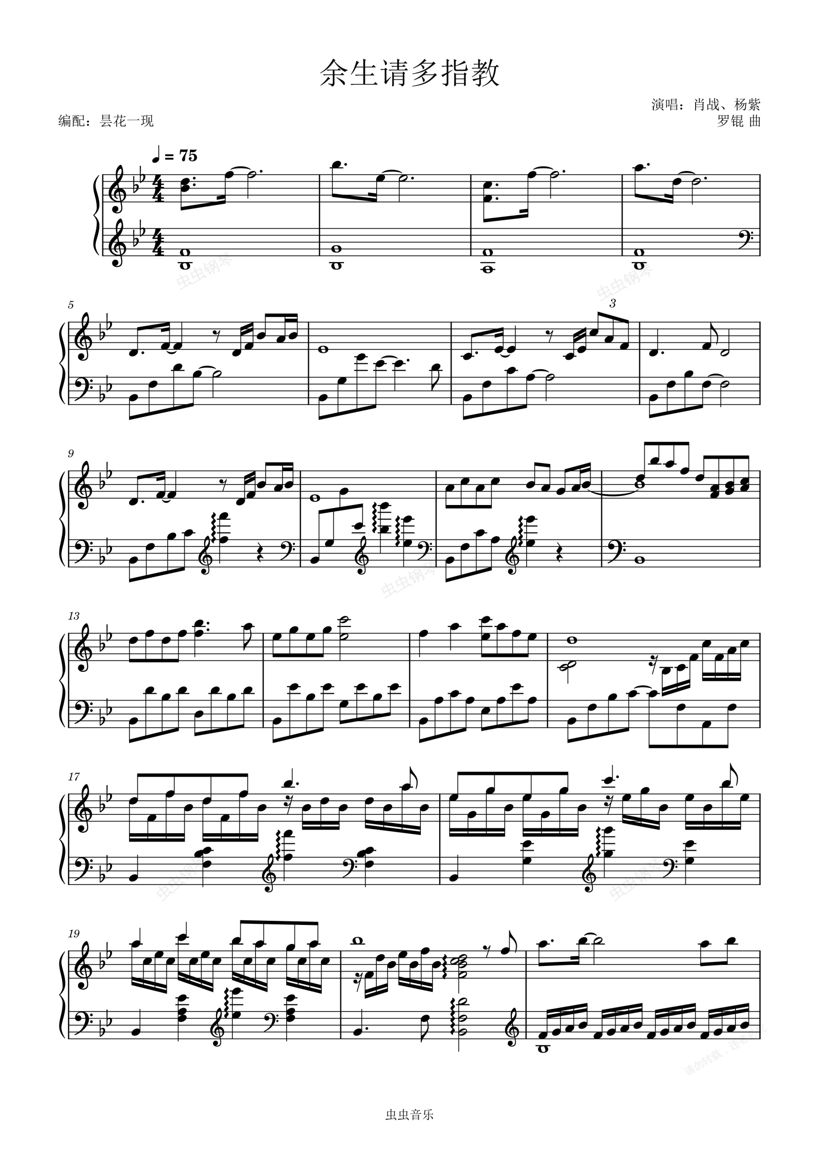 钢琴谱:余生请多指教,肖战、杨紫演唱,电视剧《余生请多指教》主题曲