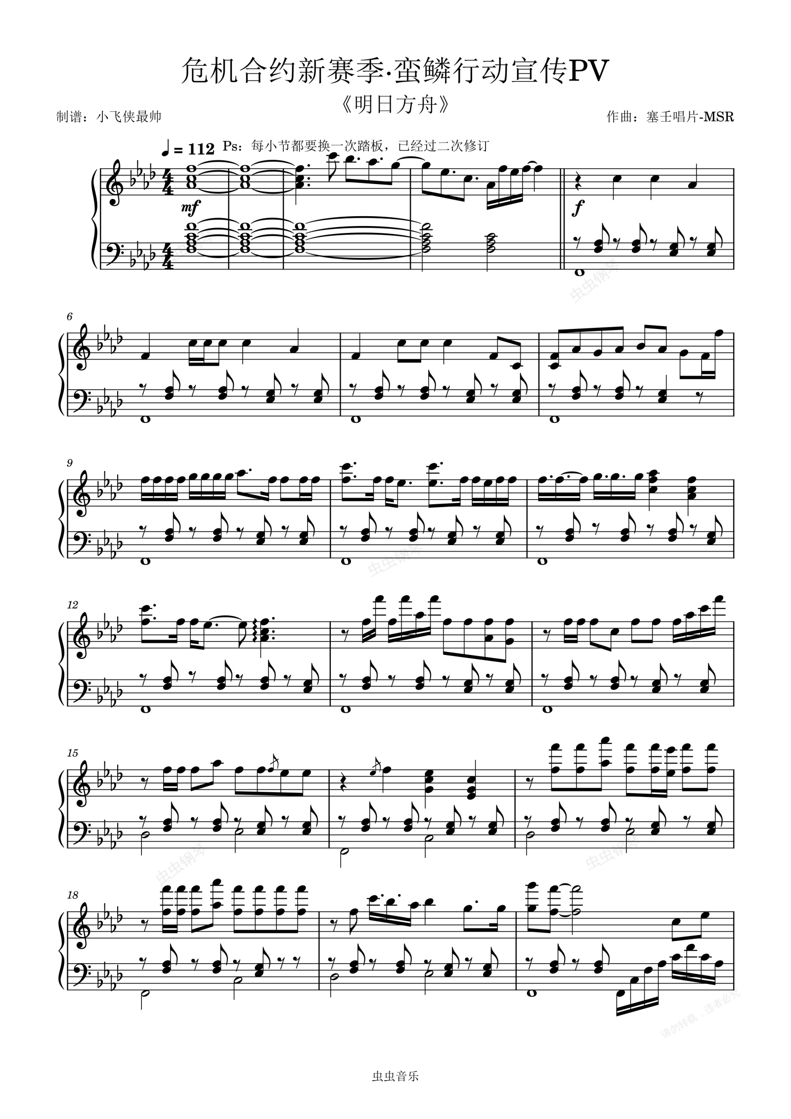 钢琴谱:危机合约·蛮鳞行动 《明日方舟》宣传PV