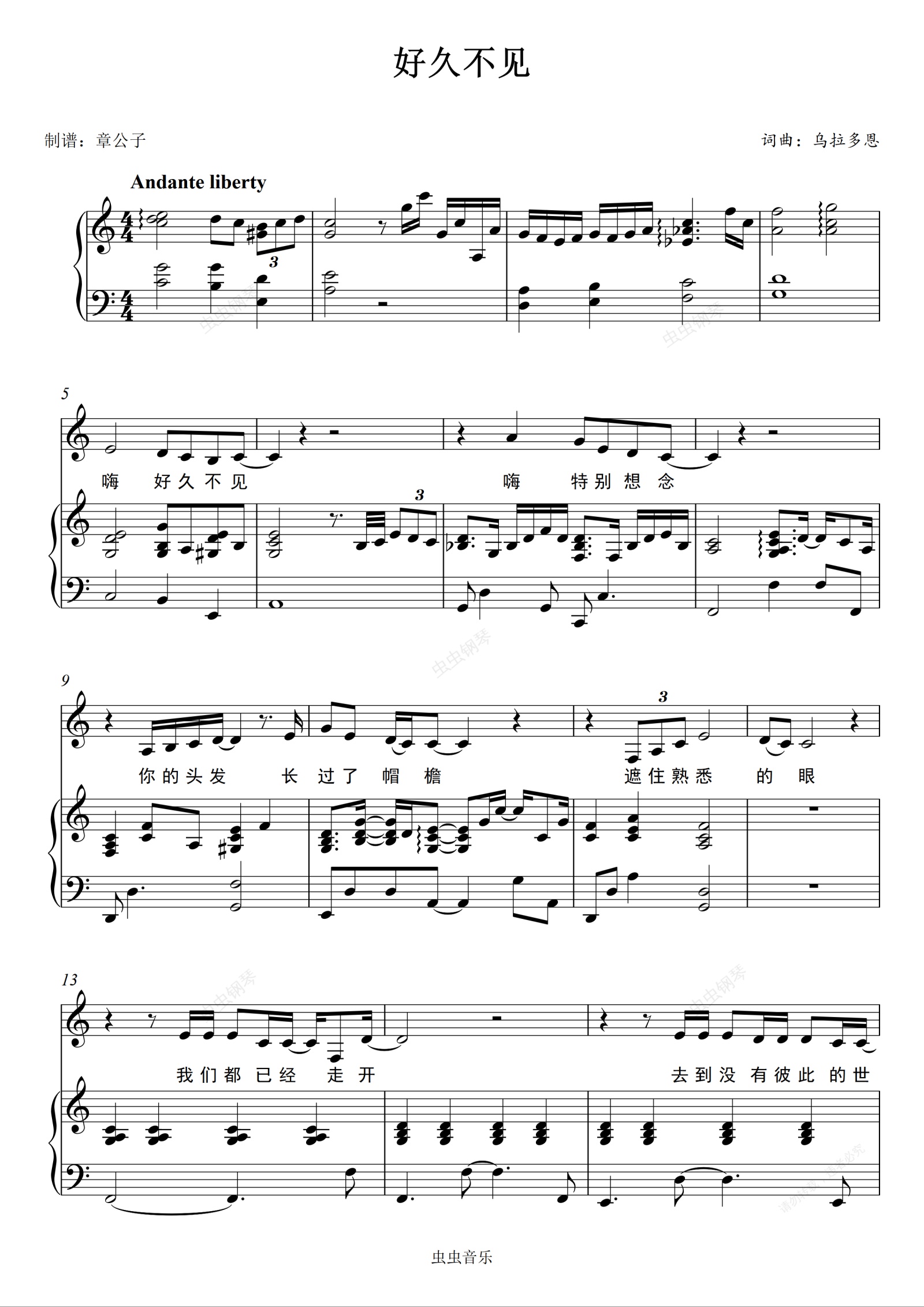 钢琴谱:《好久不见》live (乌拉多恩) 弹唱(伴奏)谱