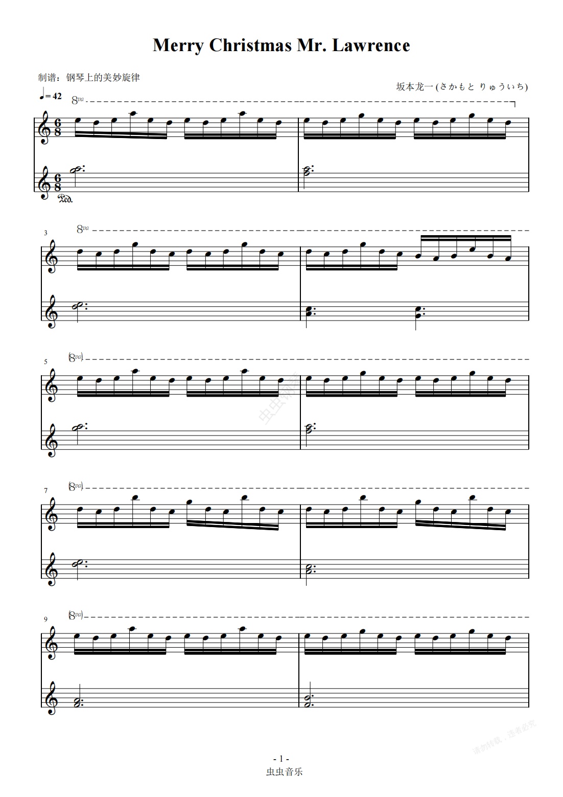 钢琴谱:Merry Christmas Mr Lawrence 圣诞快乐劳伦斯先生 C调经典流行 坂本龙一 (さかもと りゅういち)