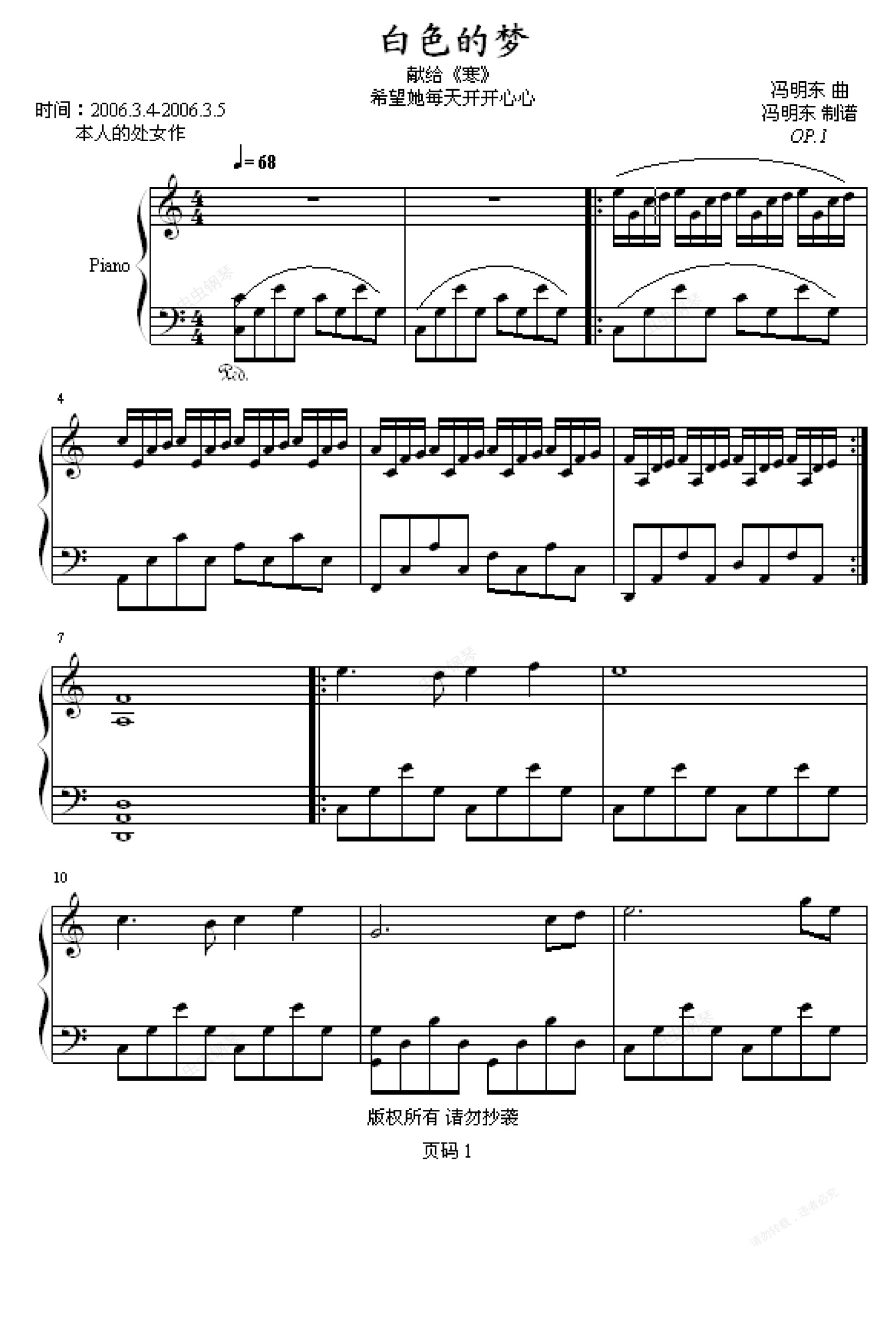 这首曲子是本人的处女作!写给我一个好朋友!我真心祝愿它快快乐乐度过每一天 曲子是我的心意 望你收下!-如此曲多有不好 请大家多于讲述 批正!本人感激不尽!还望大家多多鼓励于支持!-谢谢~ ---此说明和谱于2006年10月14日修改!