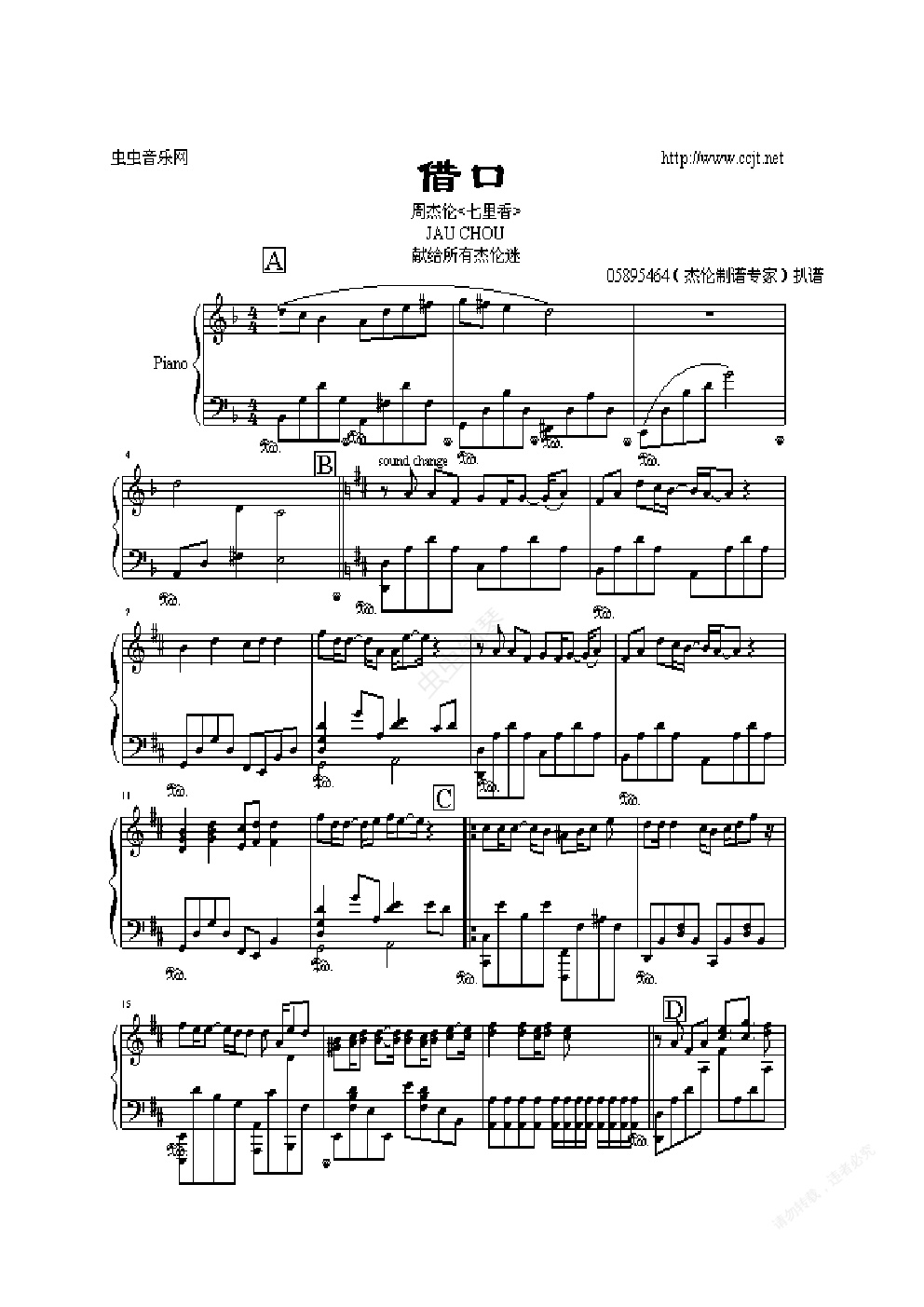 曲调:1=D