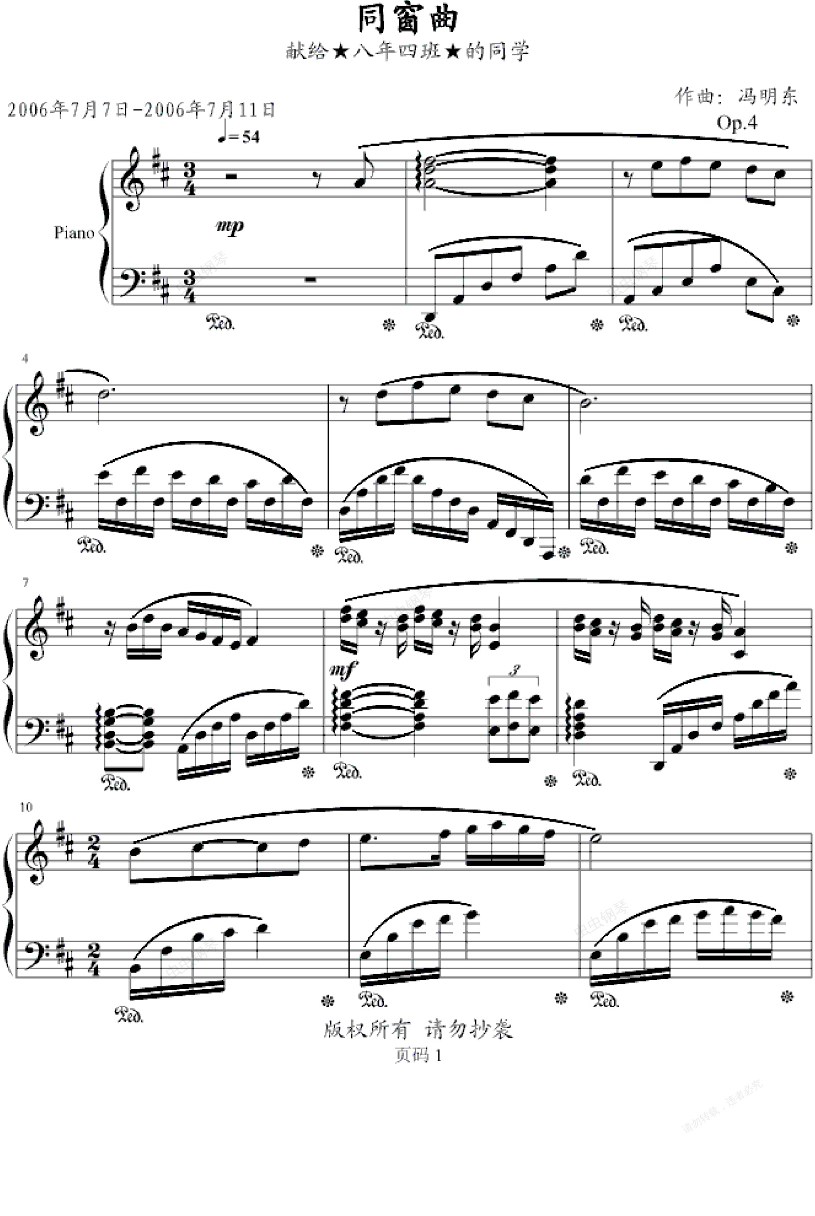 本曲写于2006年7月7日—2006年7月11日 五天内终于完成了此曲———— 本曲献给我所有的同学们!愿他们开开心心的度过美好的一天!!!