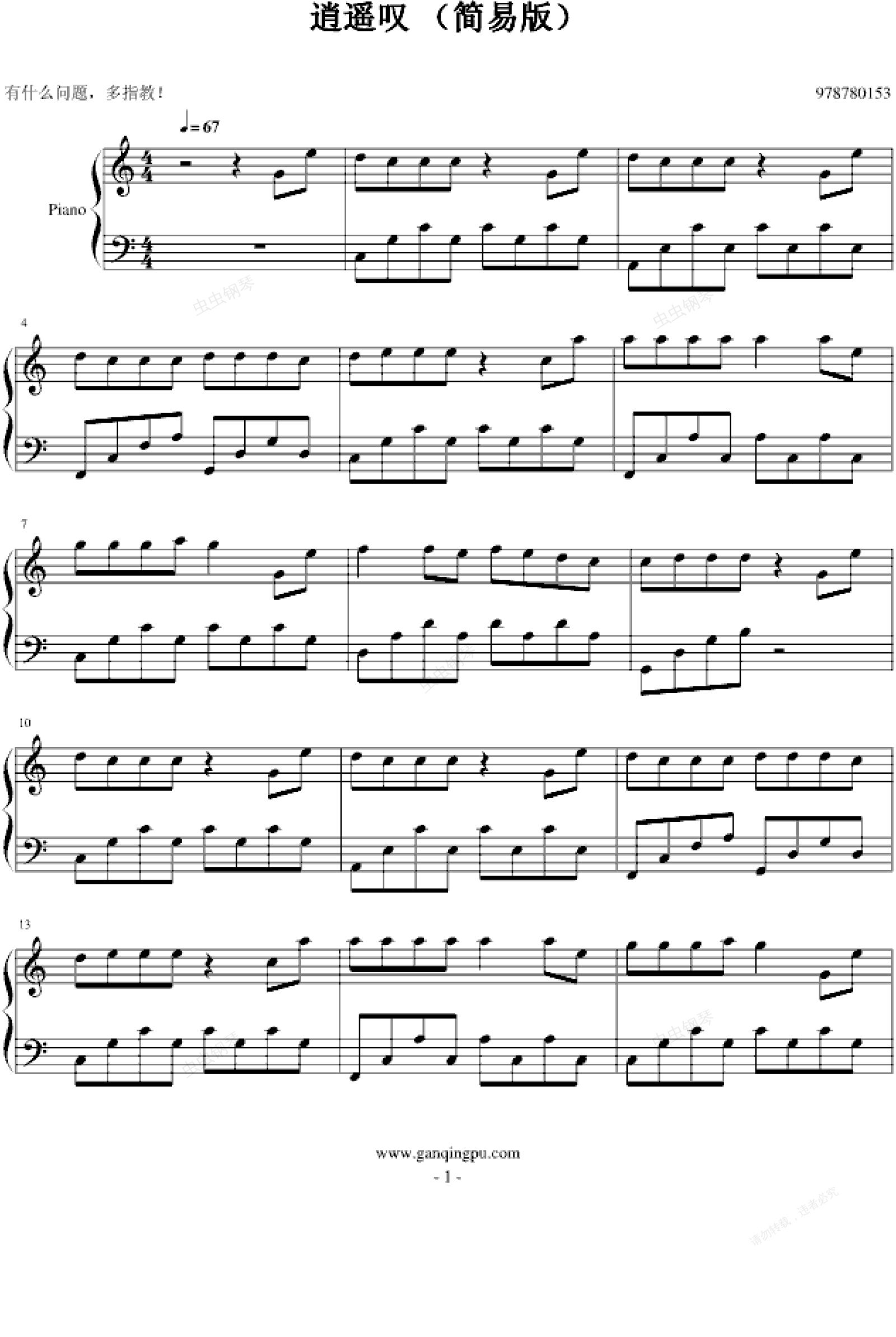 钢琴谱:逍遥叹
