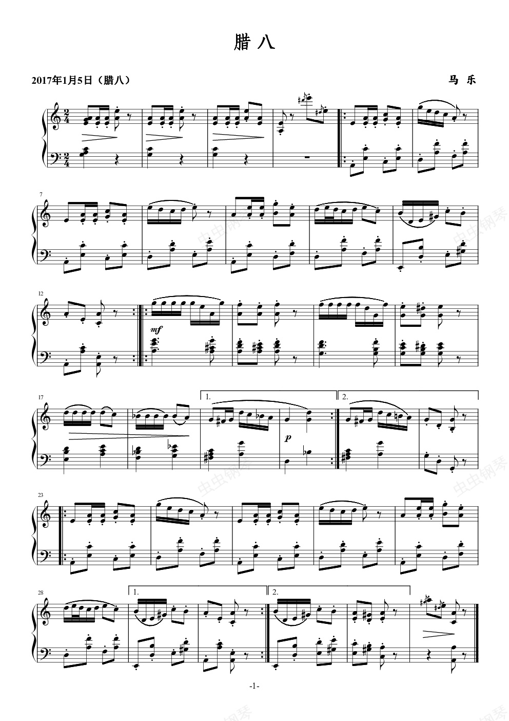 钢琴谱:腊八