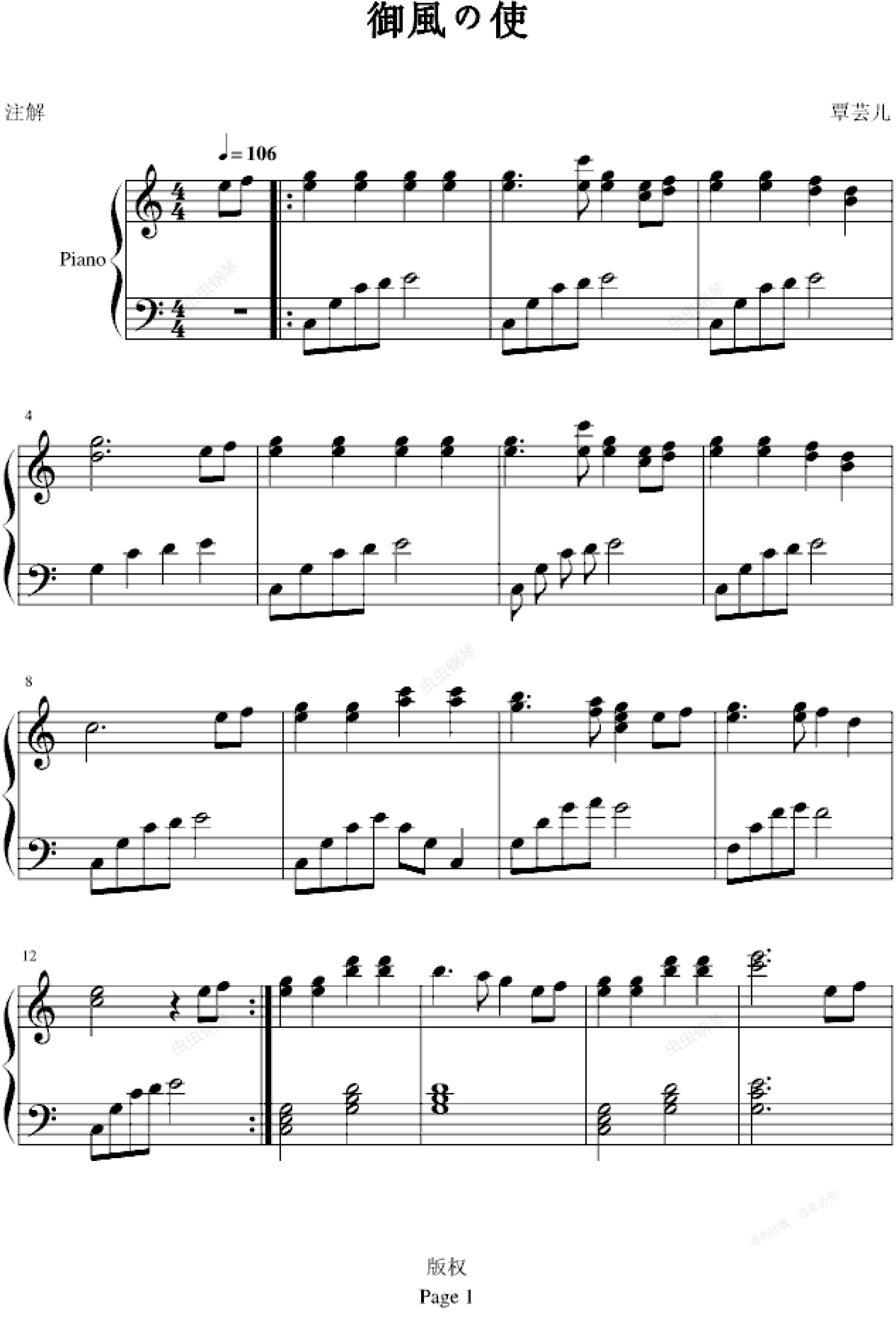 钢琴谱:御风使