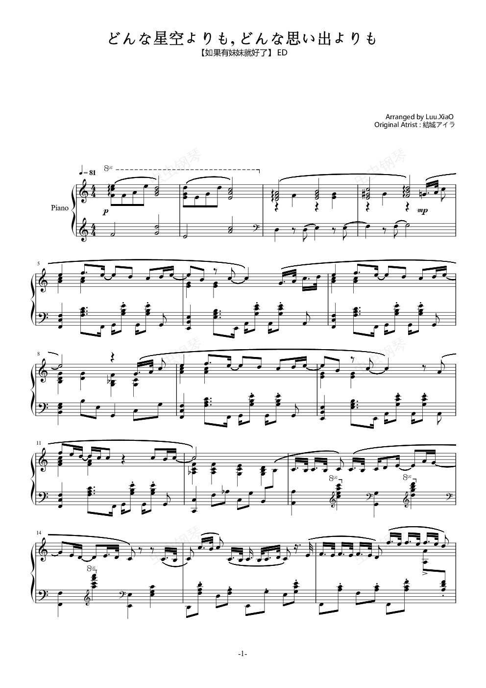 【如果有妹妹就好了】 ED どんな星空よりも, どんな思い出よりも