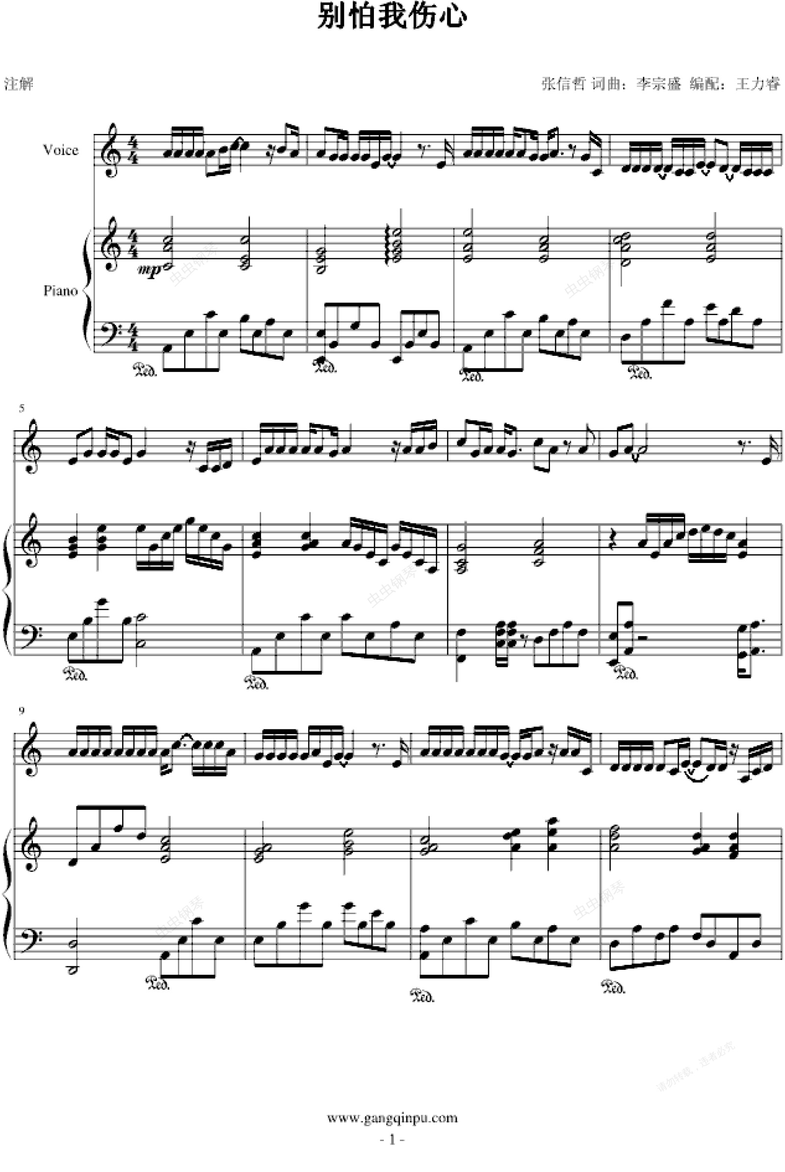 钢琴谱:别怕我伤心