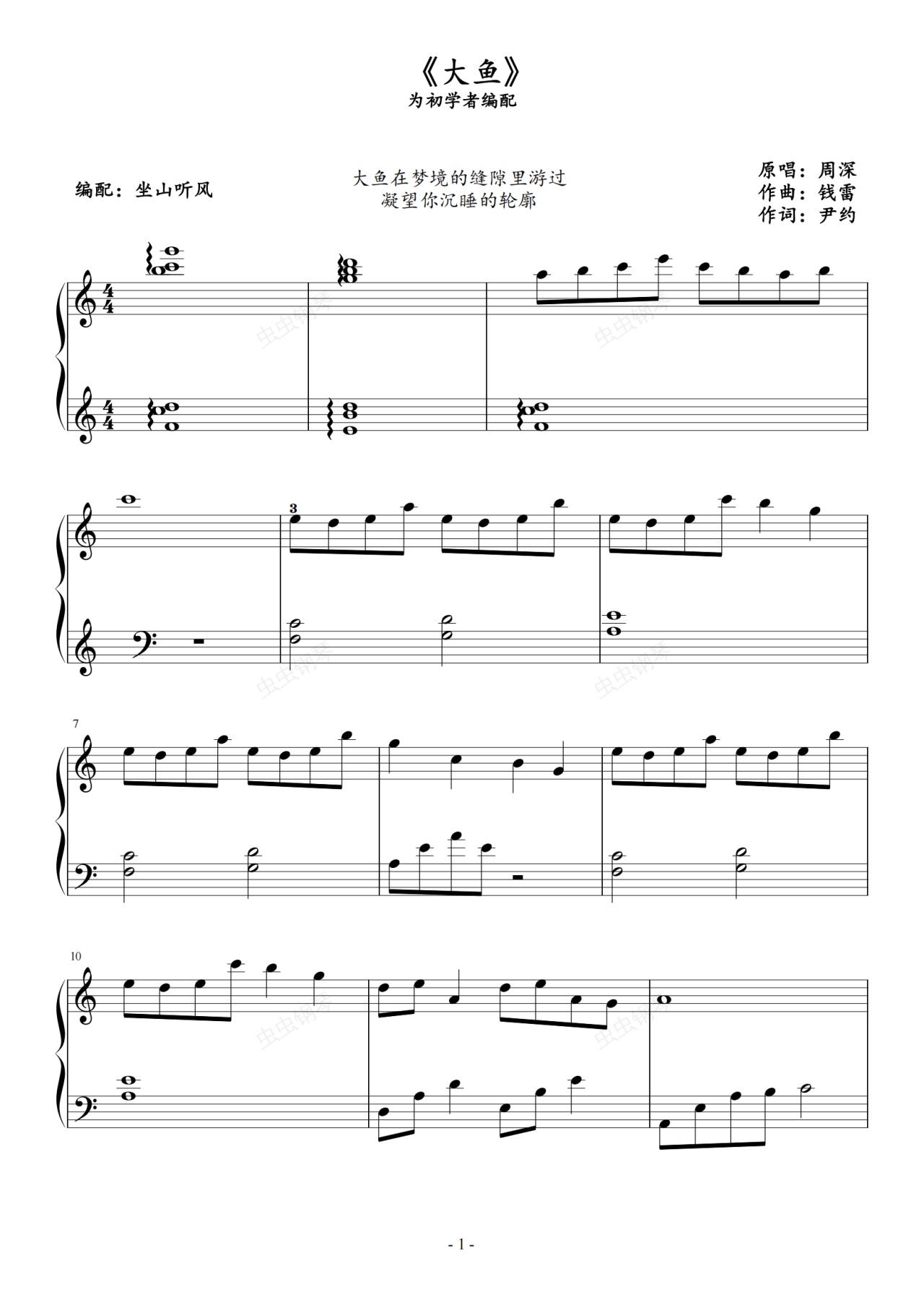 非常喜欢的一首歌曲,简易编配,希望有更多人的能弹它。