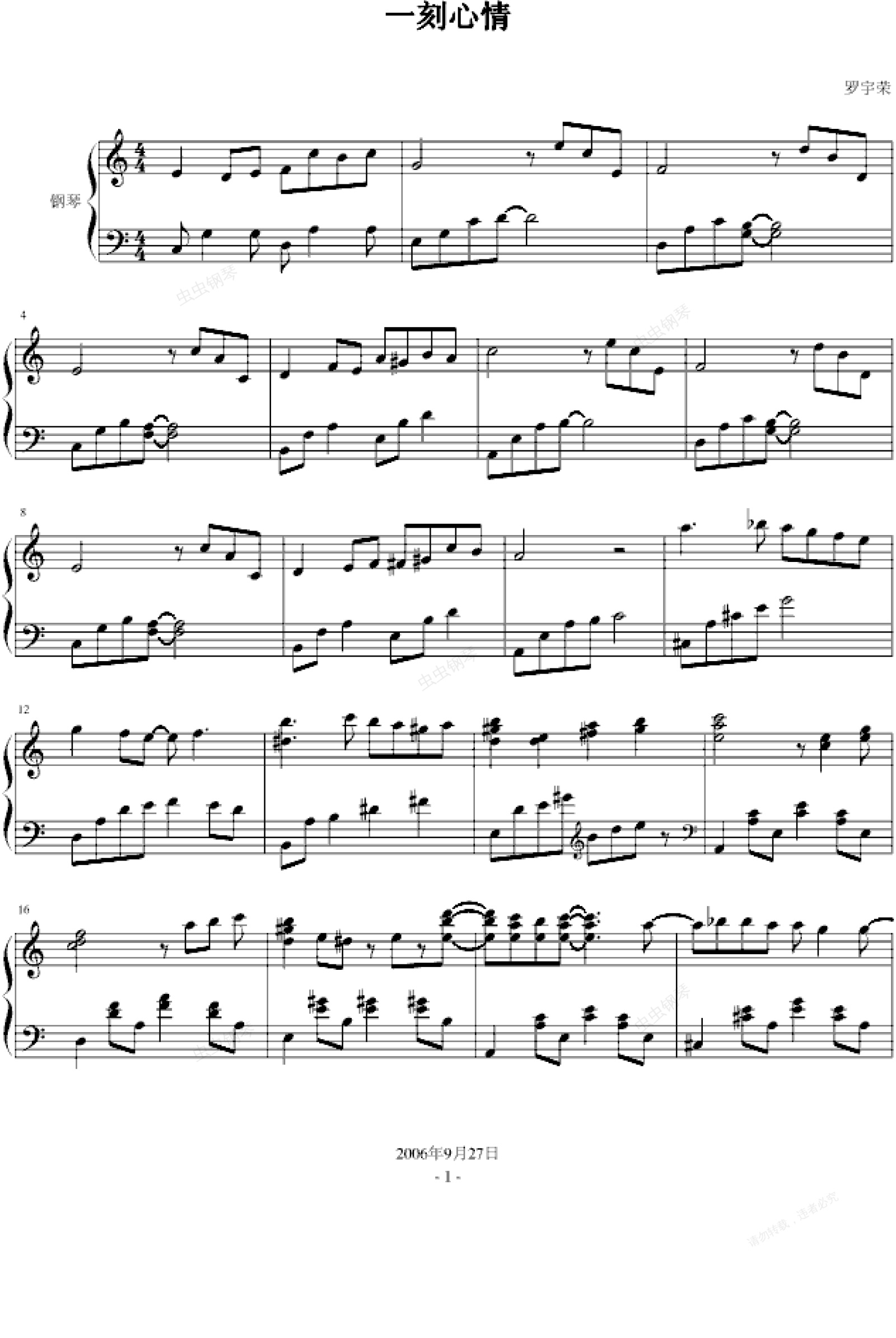 2006年9月27日作,终于把速度改回正常,还上传到MP3上来,MP3和琴谱有些出入,有些即兴成分, 谢谢大家喜欢这短曲子啊,这钢琴谱网站不错呢~