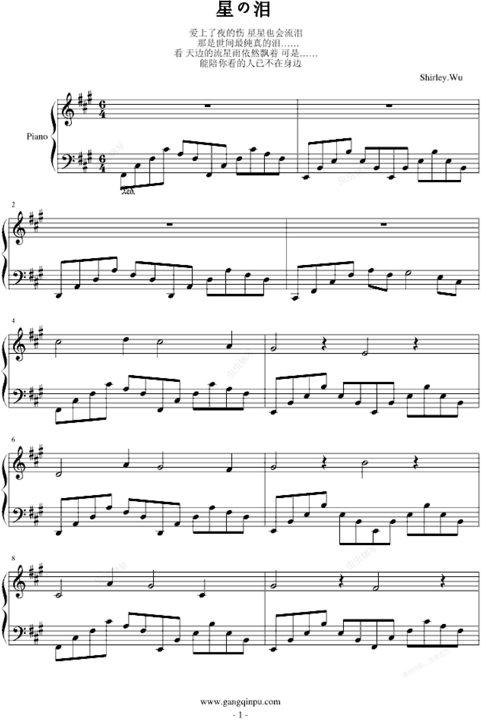 钢琴谱:星之泪