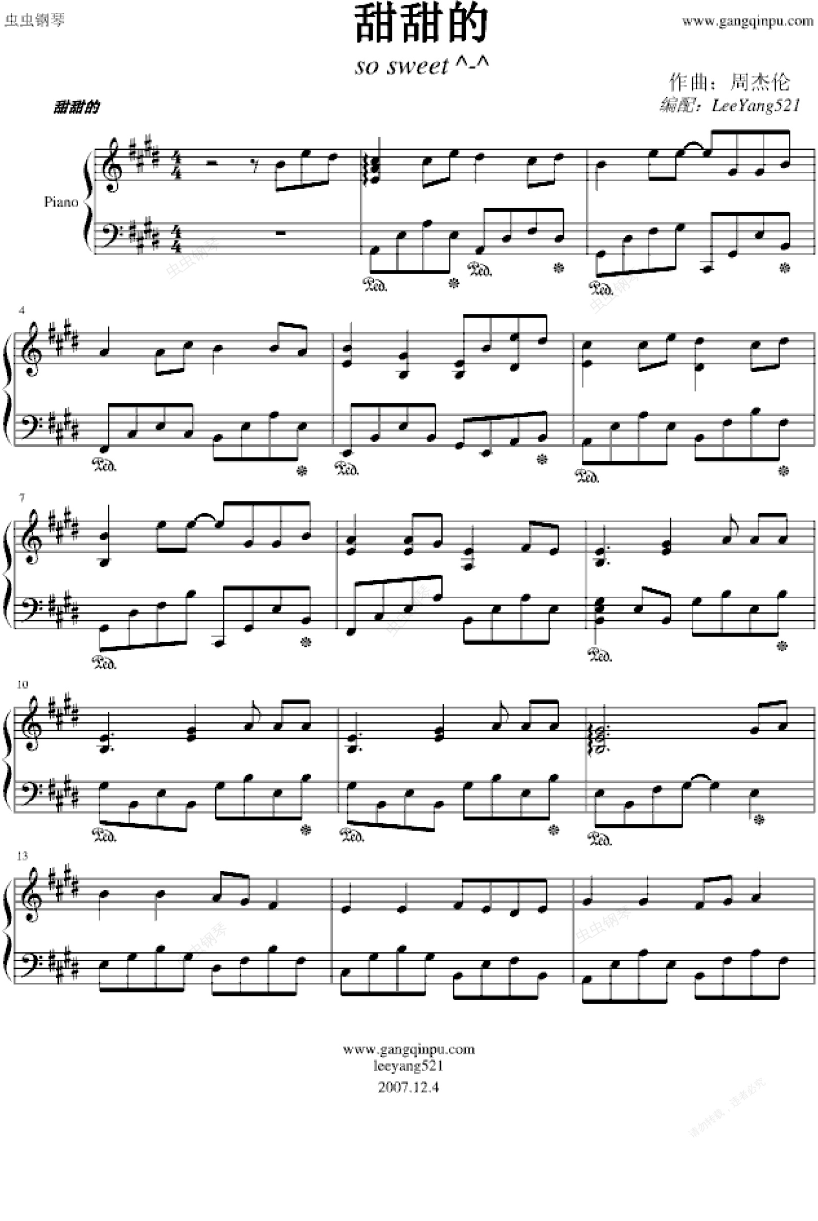 甜甜的(钢琴版)