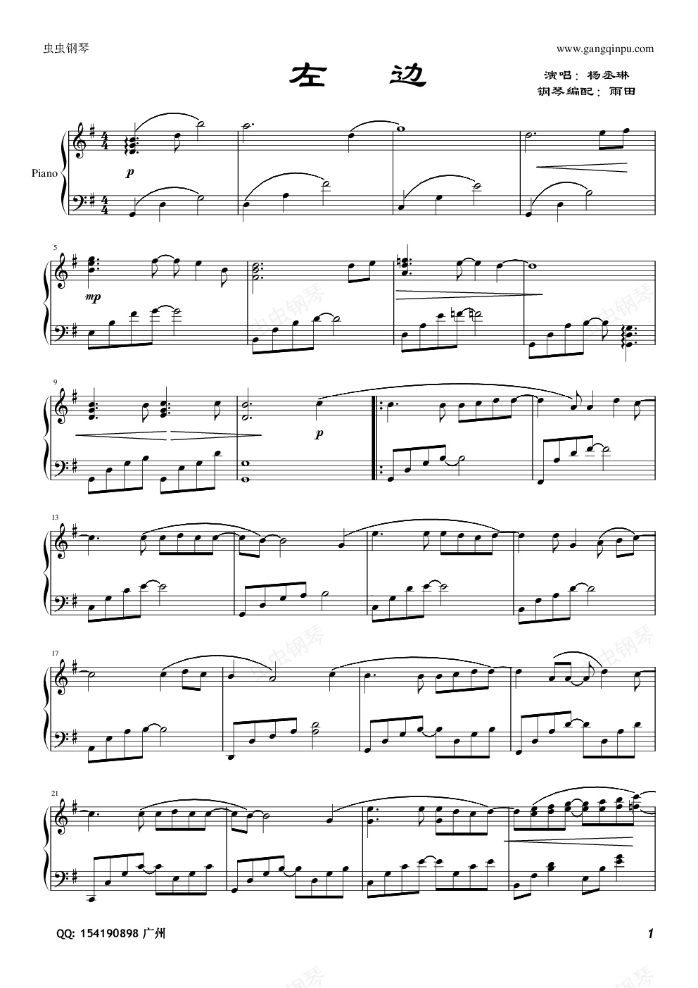 原曲是#F调的,为了演奏方便,我把曲子移到G调上了。