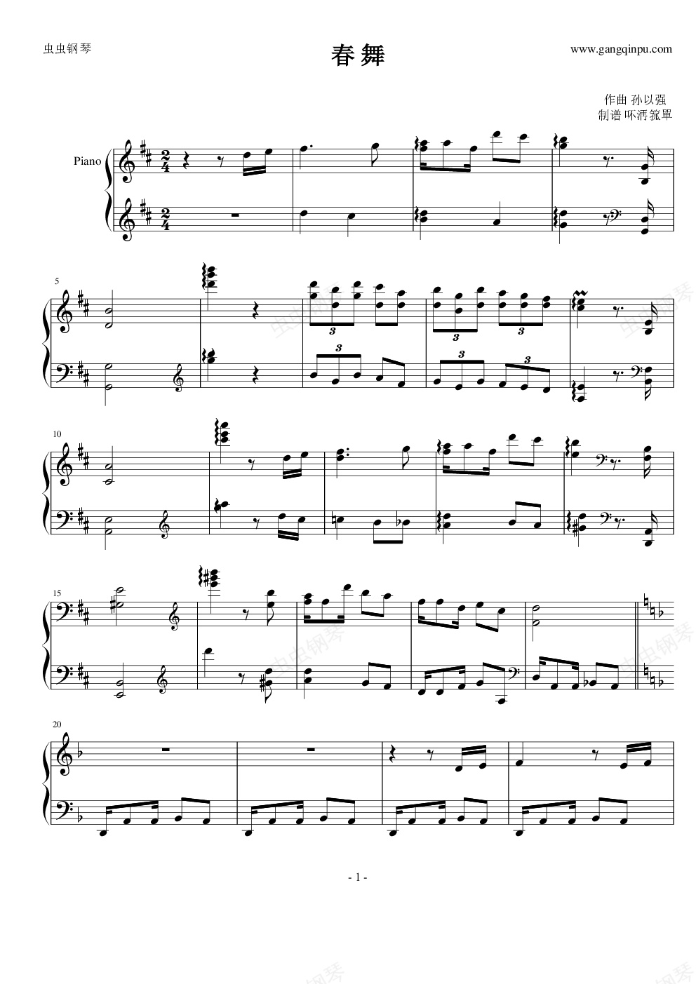 钢琴谱:春舞