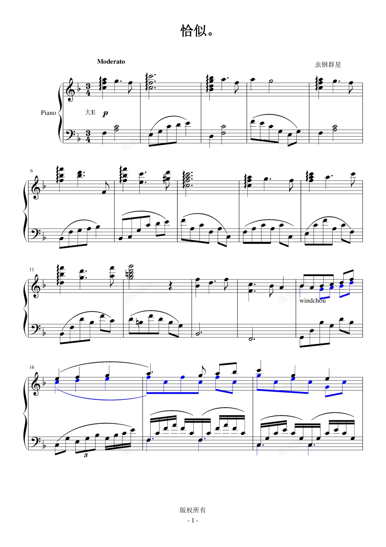 钢琴谱:恰似