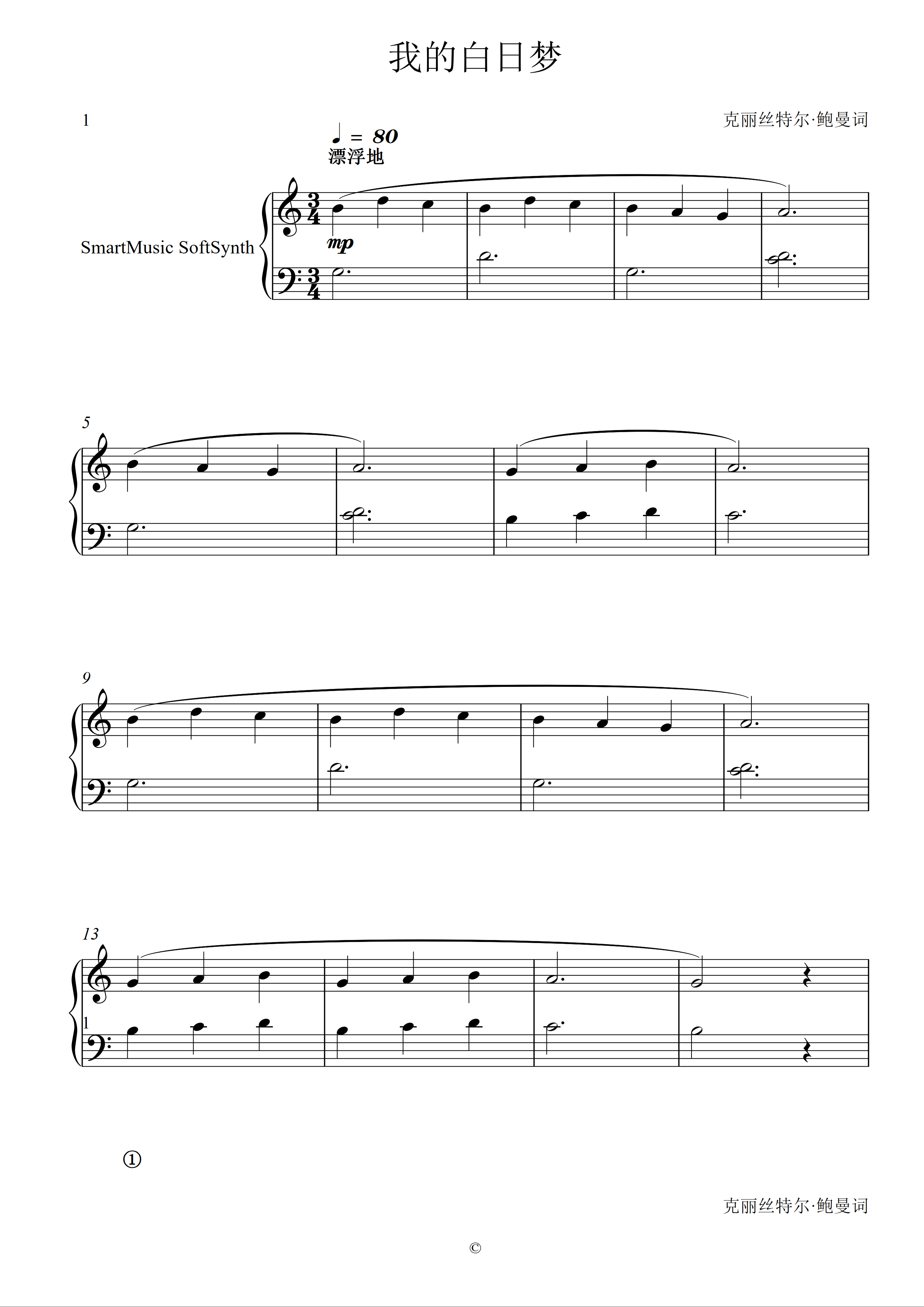 钢琴谱:2-4. 我的白日梦
