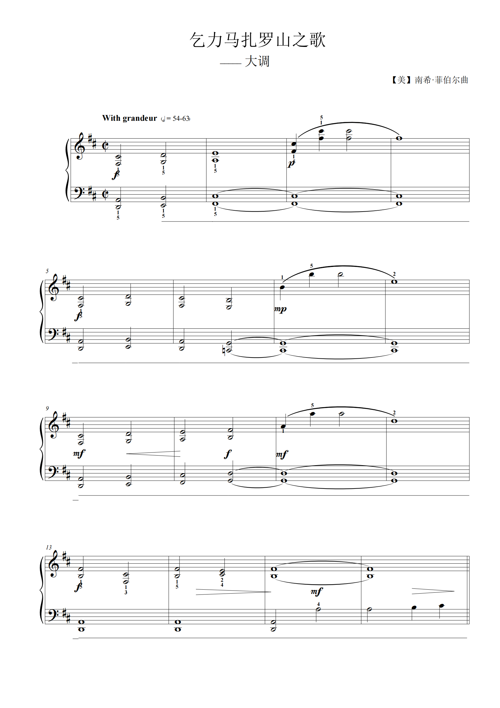 • 7-2. 乞力马扎罗山之歌钢琴简谱 C调 数字双手