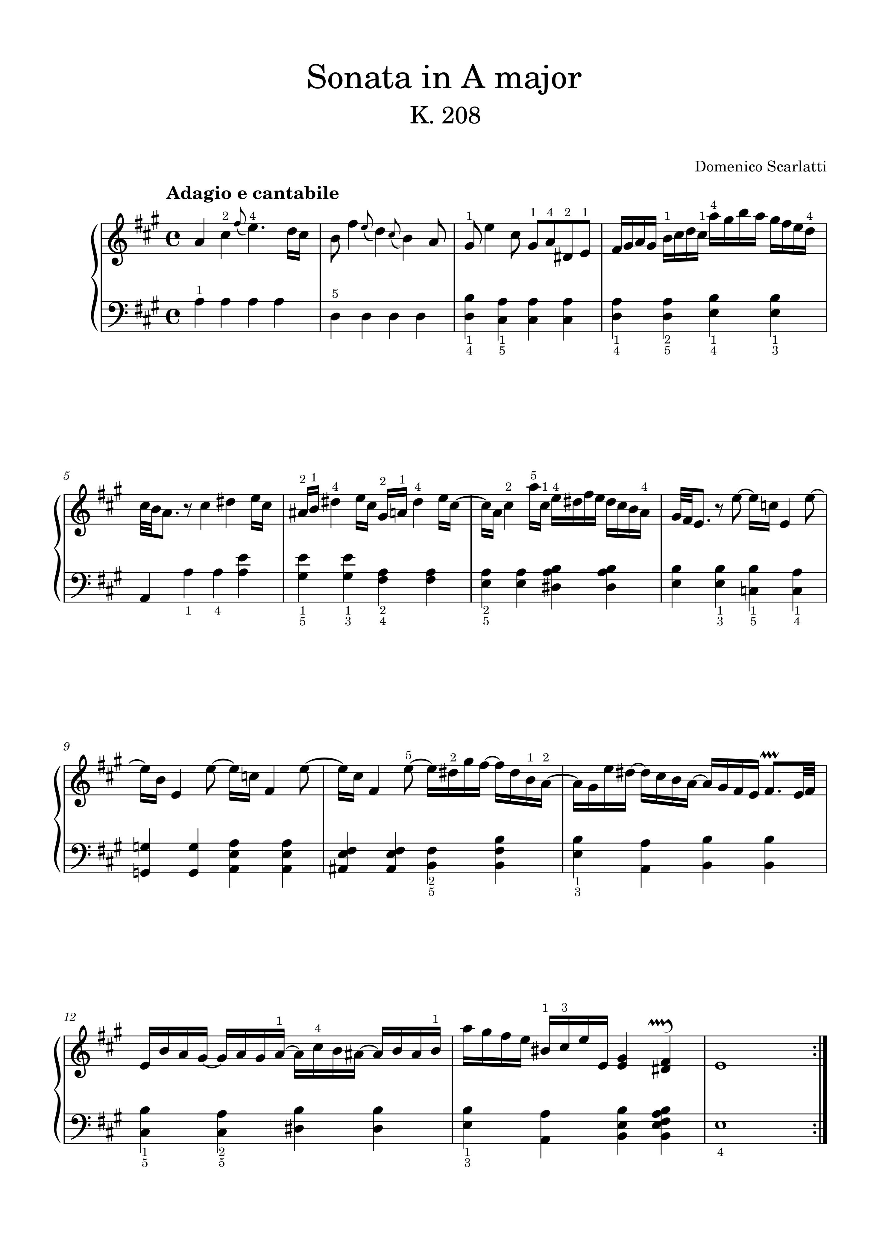 • A大调奏鸣曲 K. 208钢琴简谱 A调 数字双手