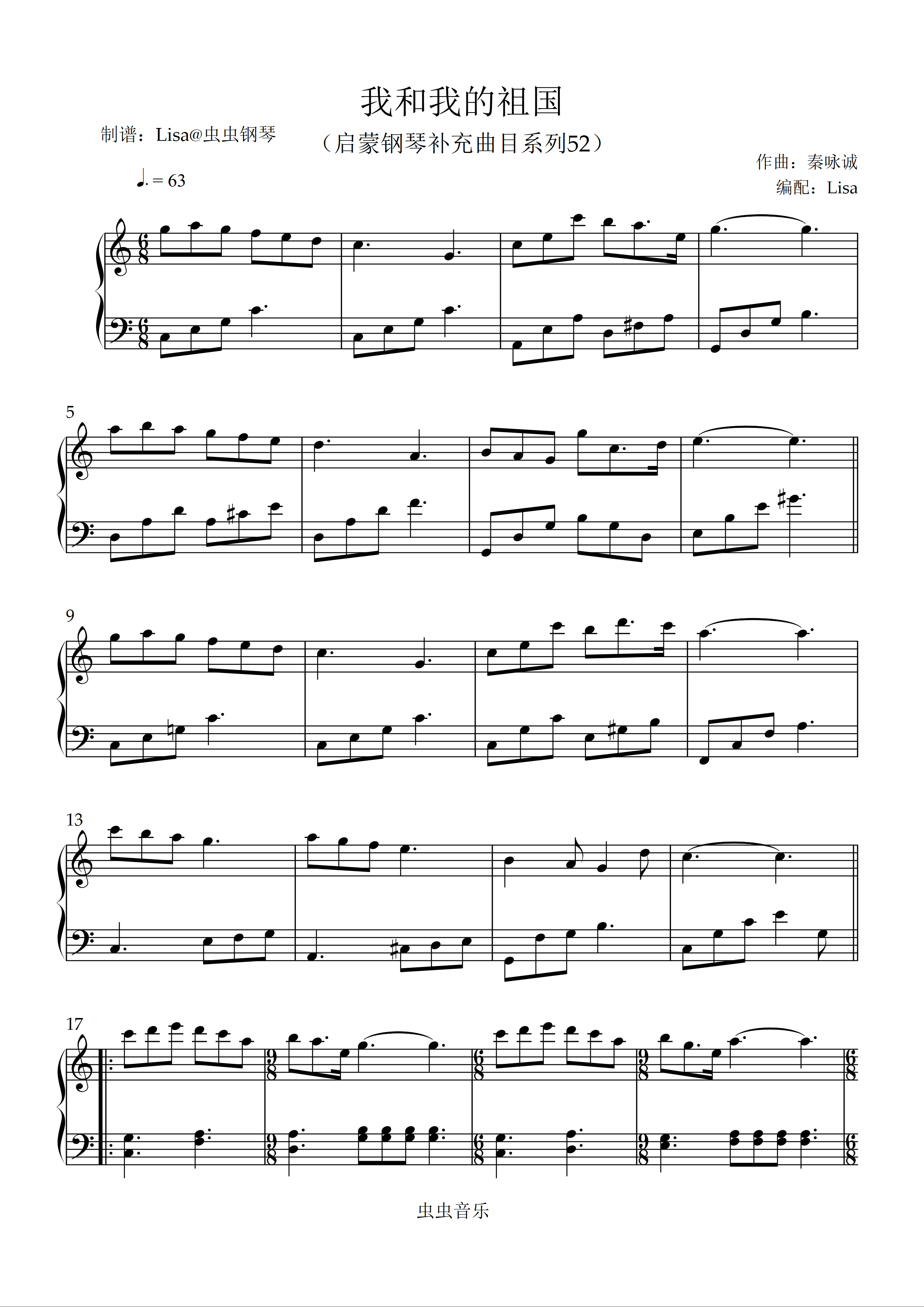 • 我和我的祖国钢琴简谱 C调 数字双手
