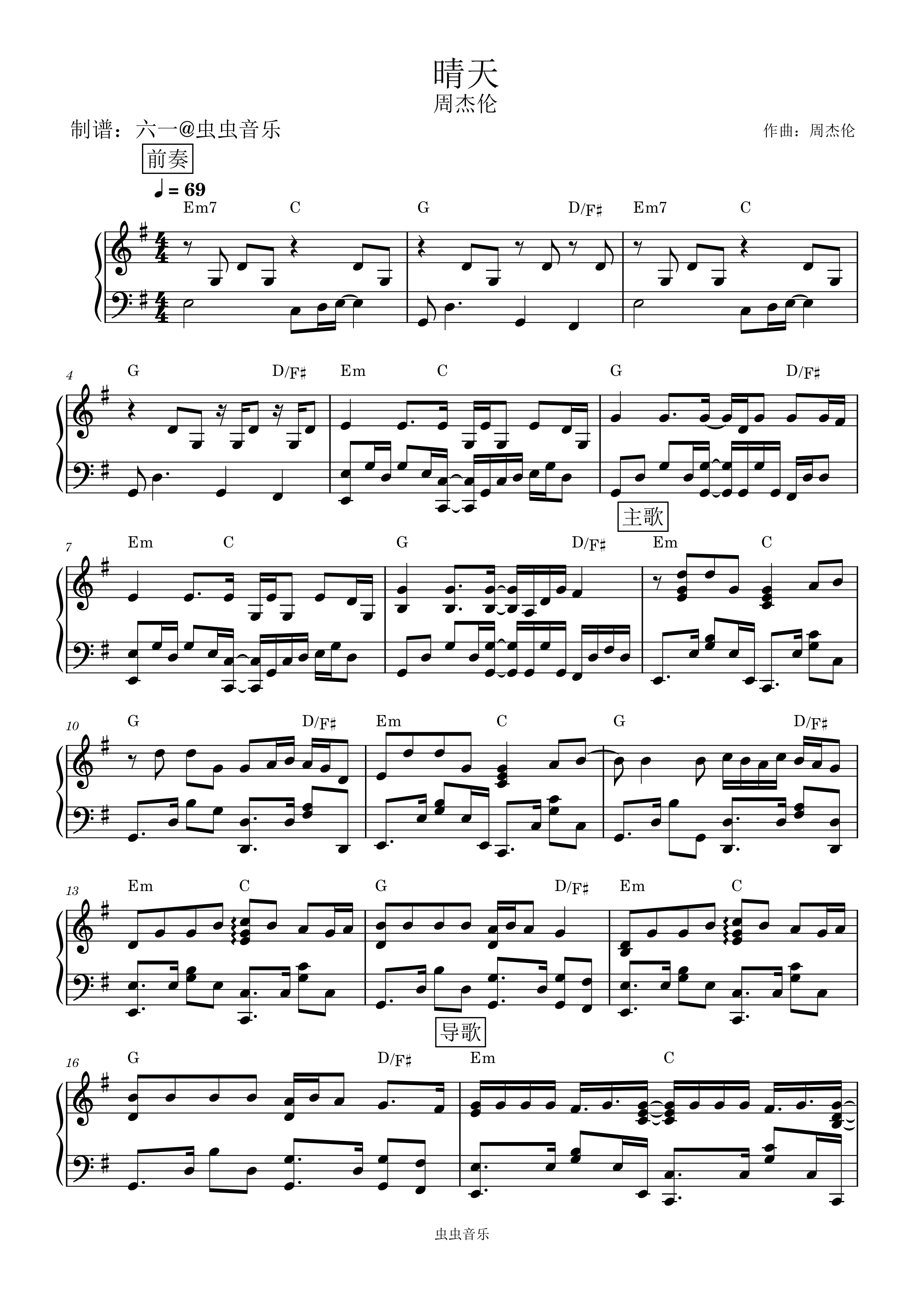 • 晴天进行曲钢琴简谱 C调 数字双手