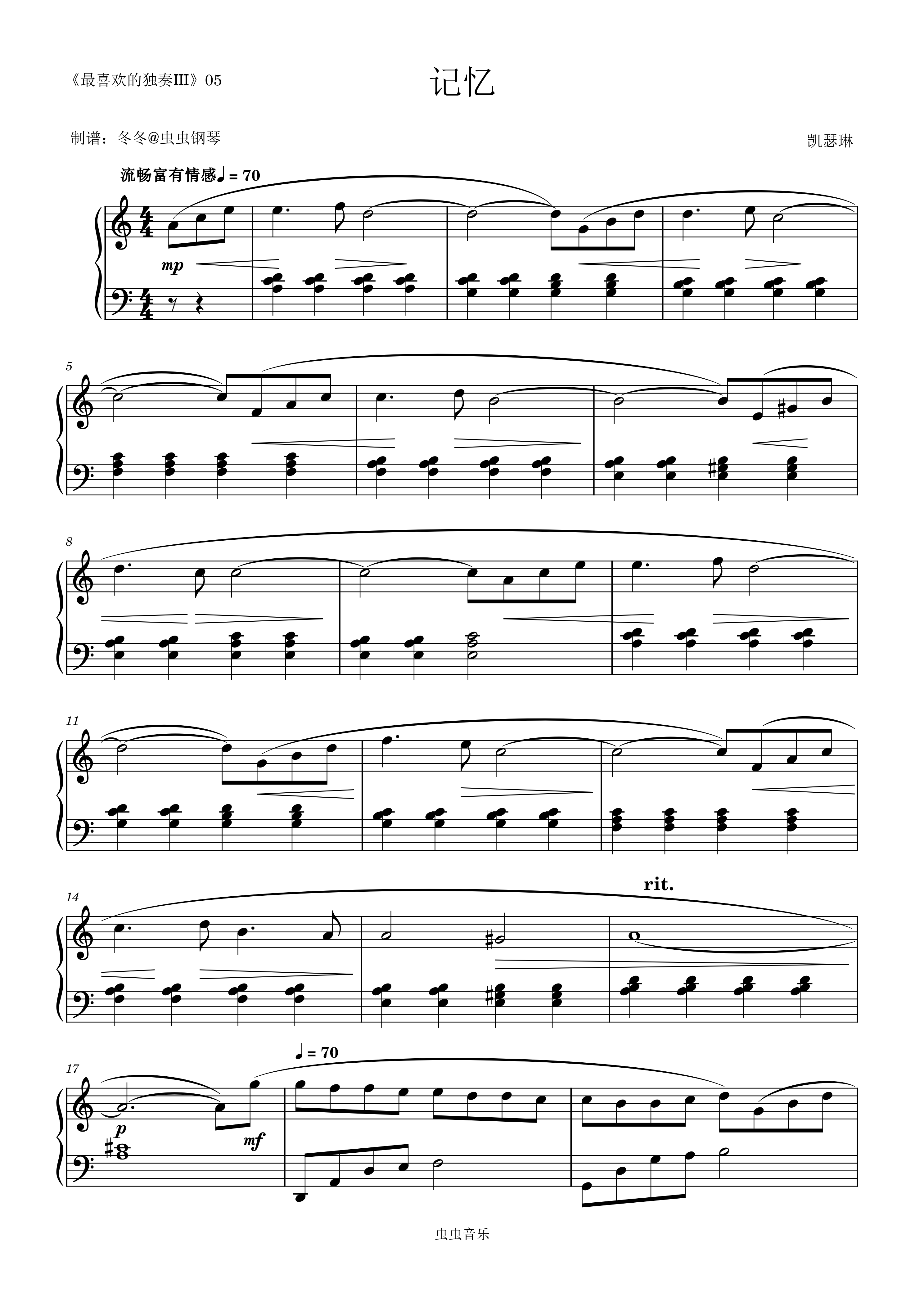 • 记忆棉钢琴简谱 C调 数字双手 林宝