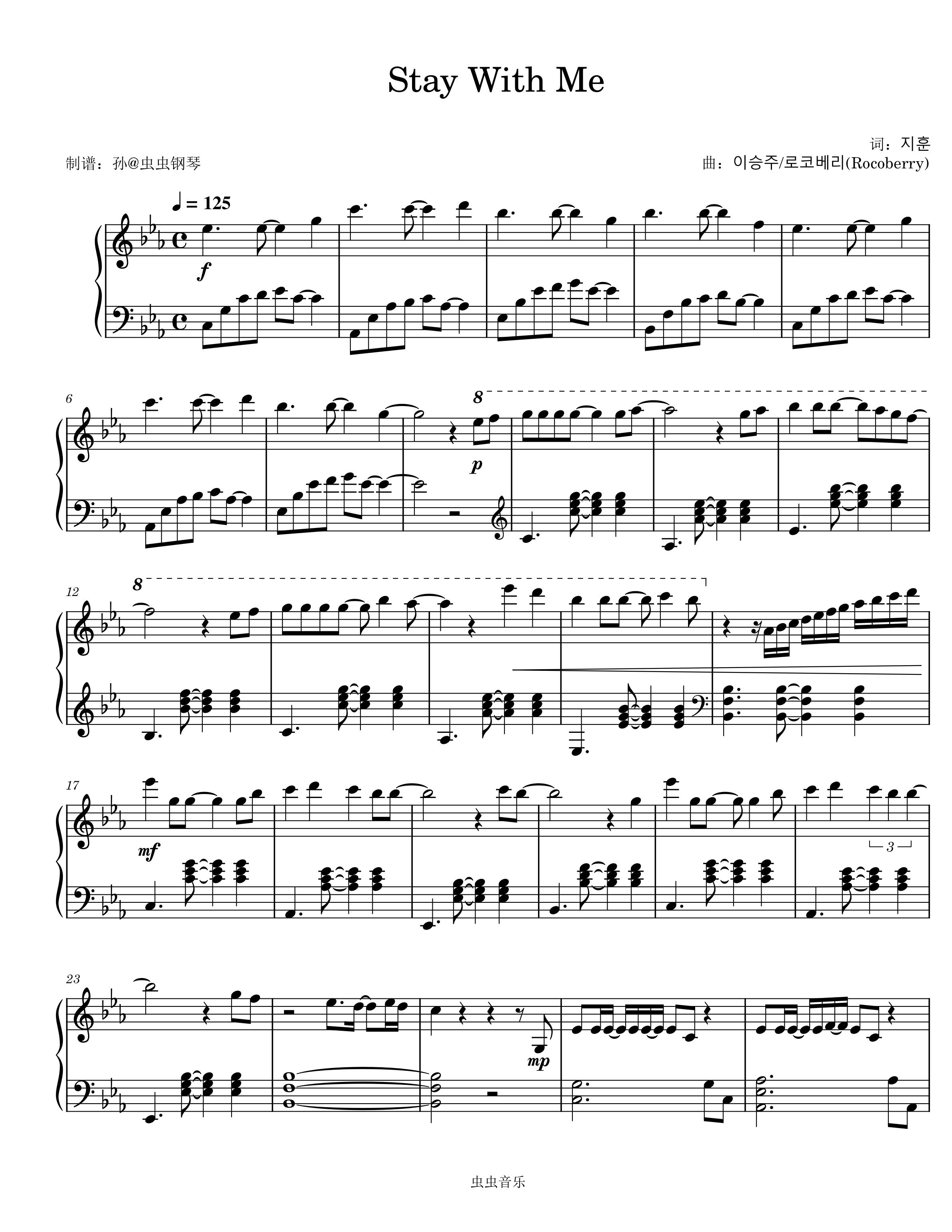 • Stay With Me钢琴简谱 E大调 数字双手 지훈