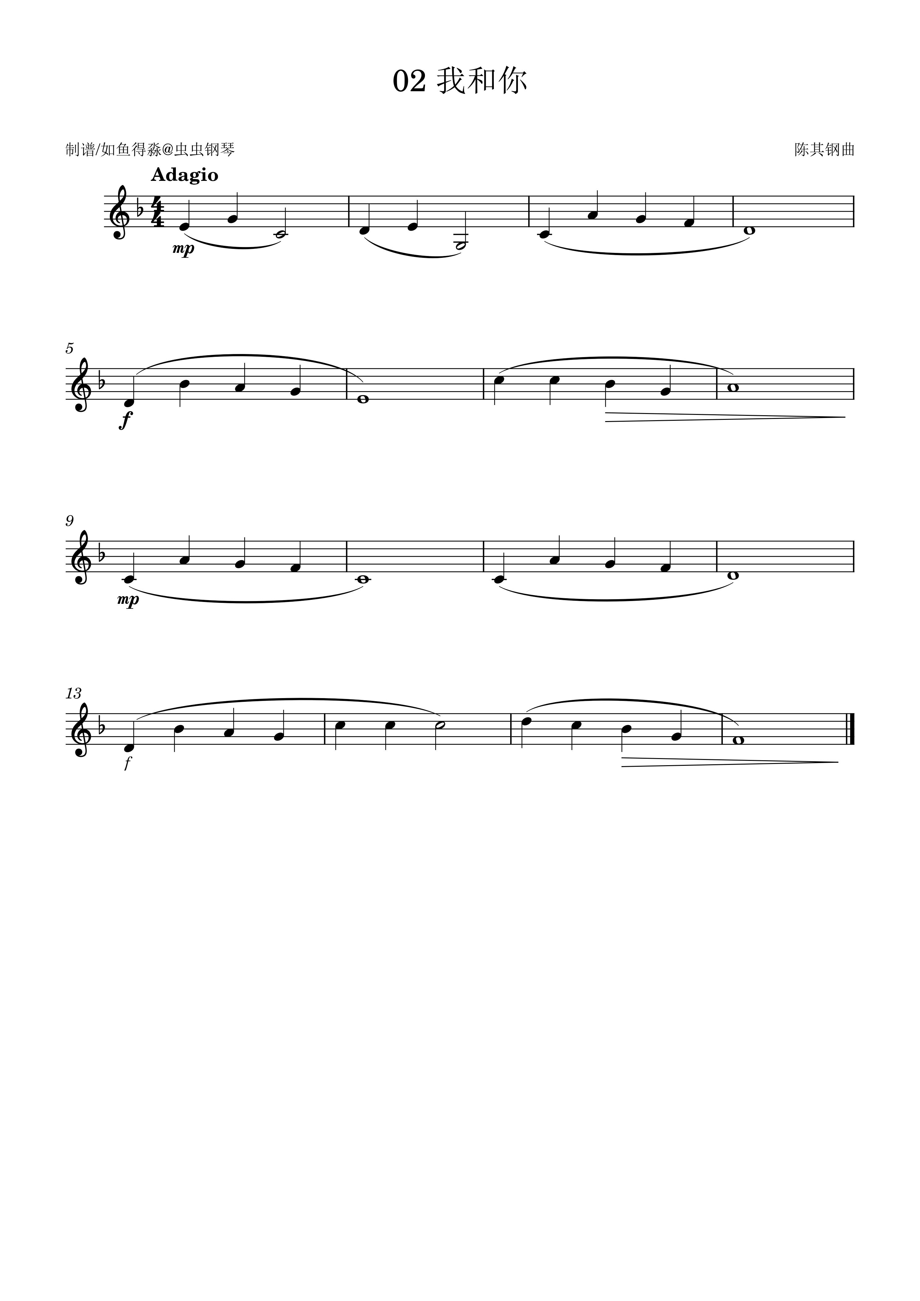 《视唱练耳考试曲02 我和你》是中央院音基演唱的一首歌曲,由央院作词作曲,本曲为F调(附和弦)适合所有同学演奏和学习