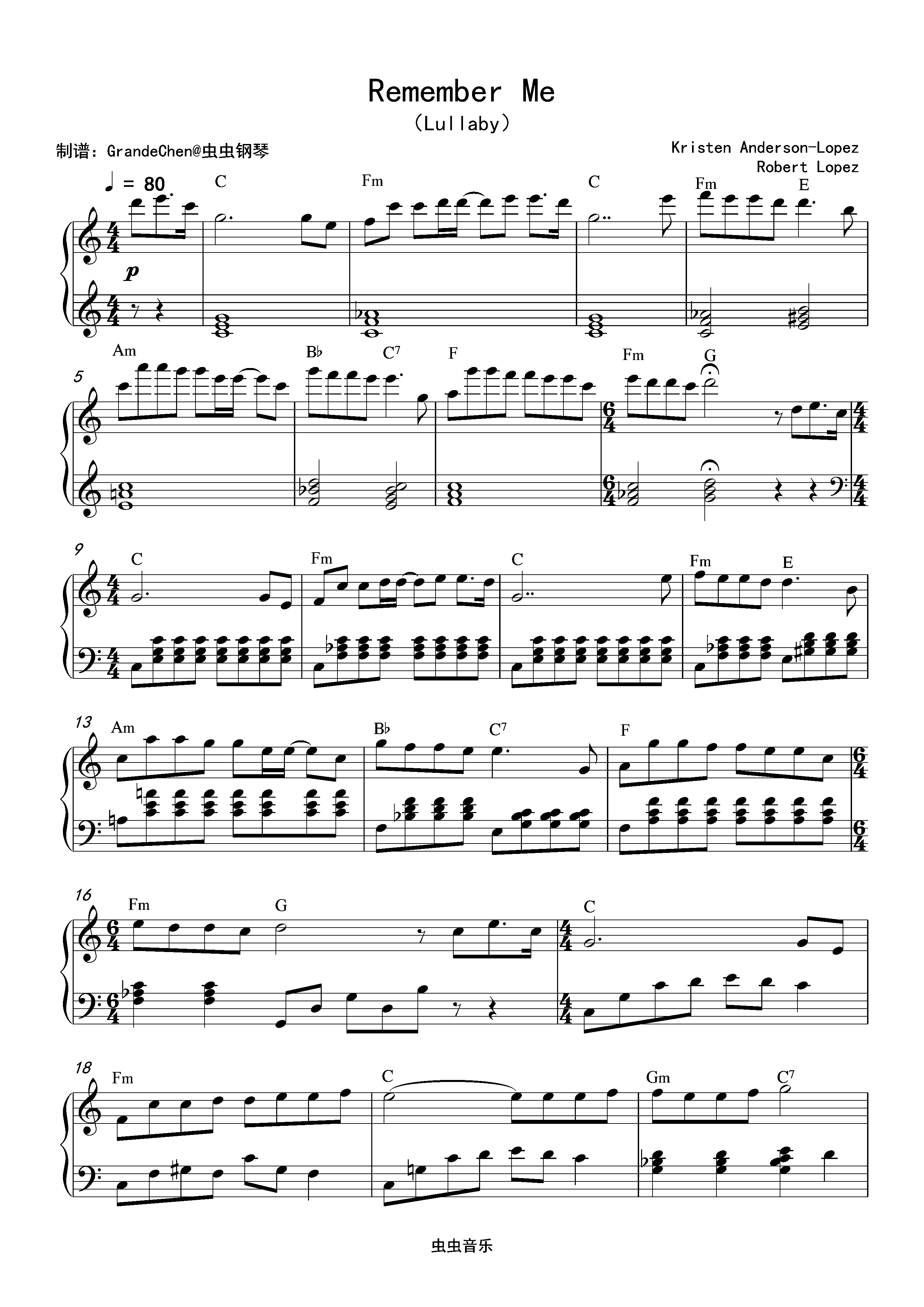 Remember Me钢琴简谱 数字双手 Kristen Anderson-Lopez & Robert Lopez