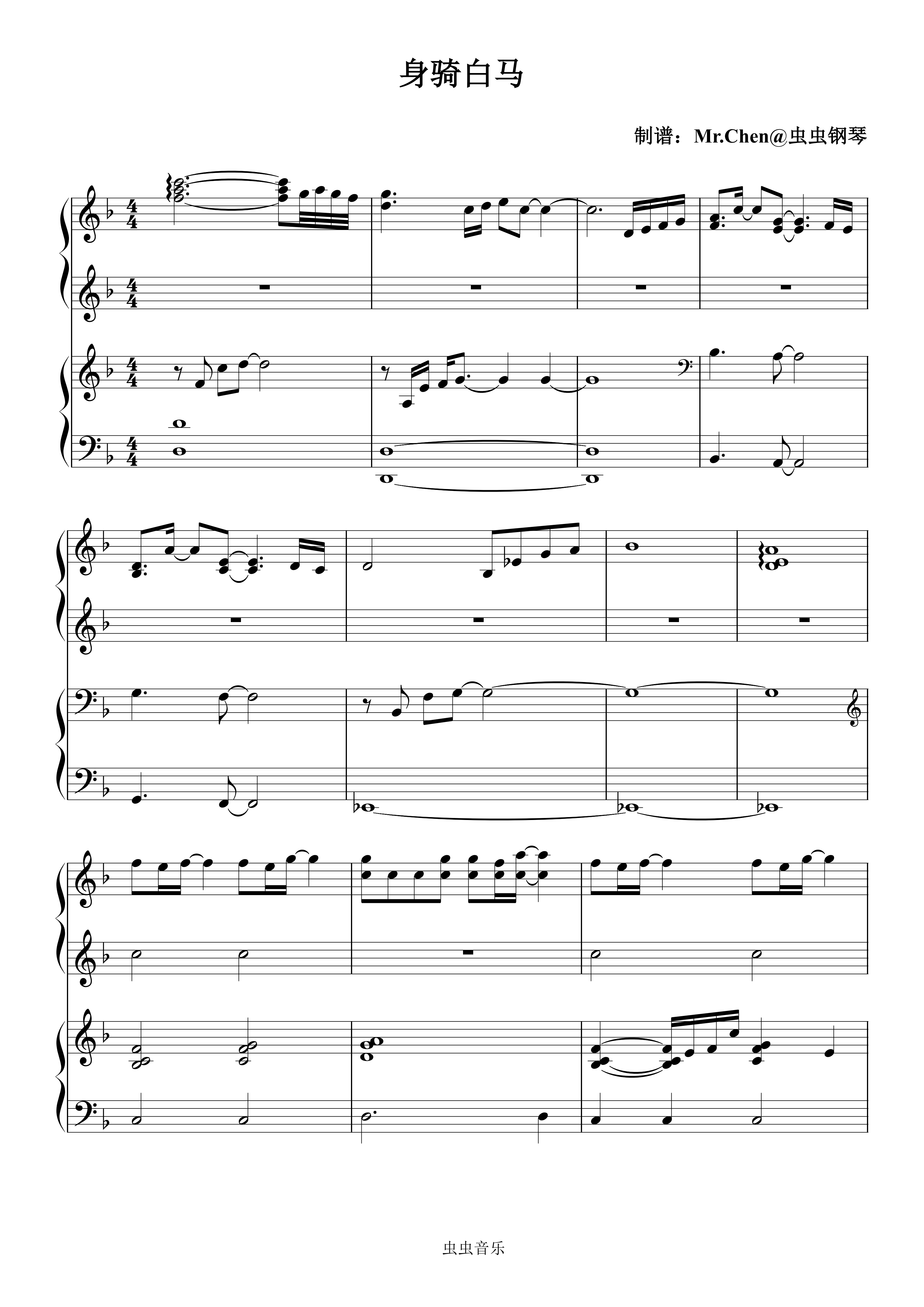 • 身骑白马钢琴简谱 F调 数字双手 徐佳莹