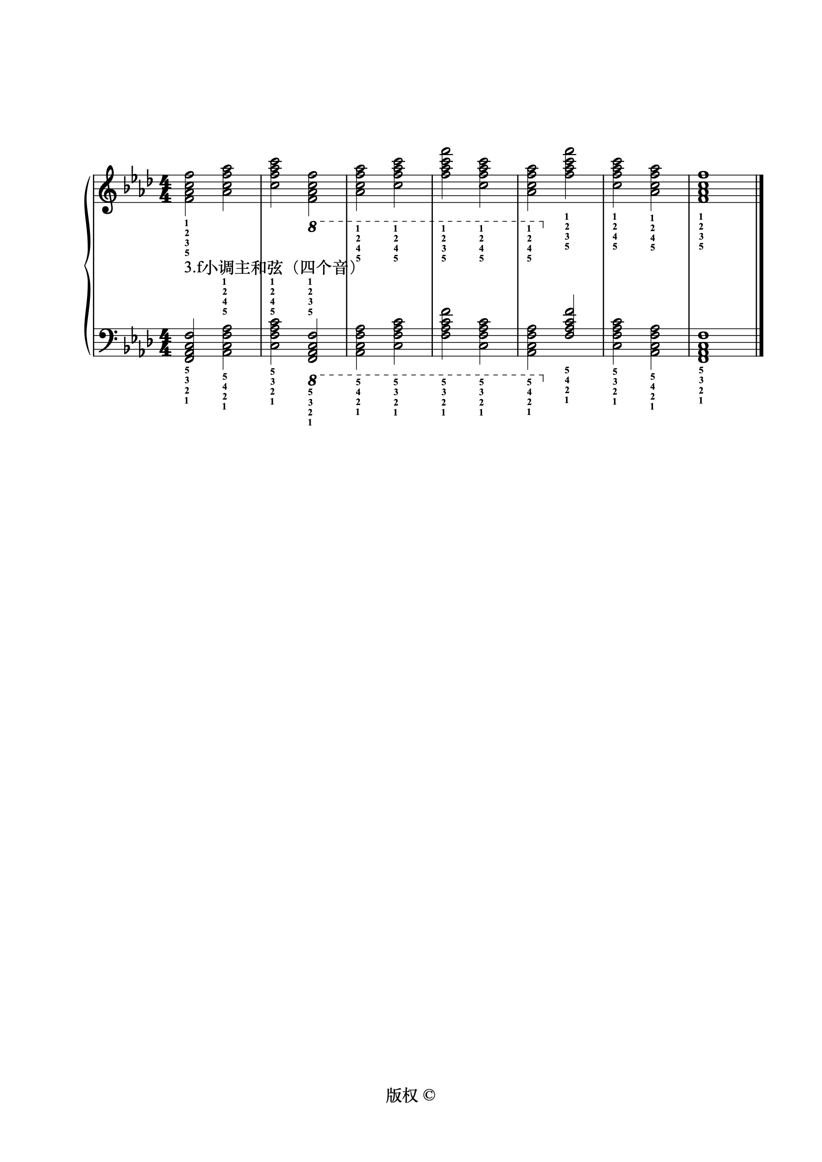 • f小调主和弦(三个音)钢琴简谱 f调 数字双手