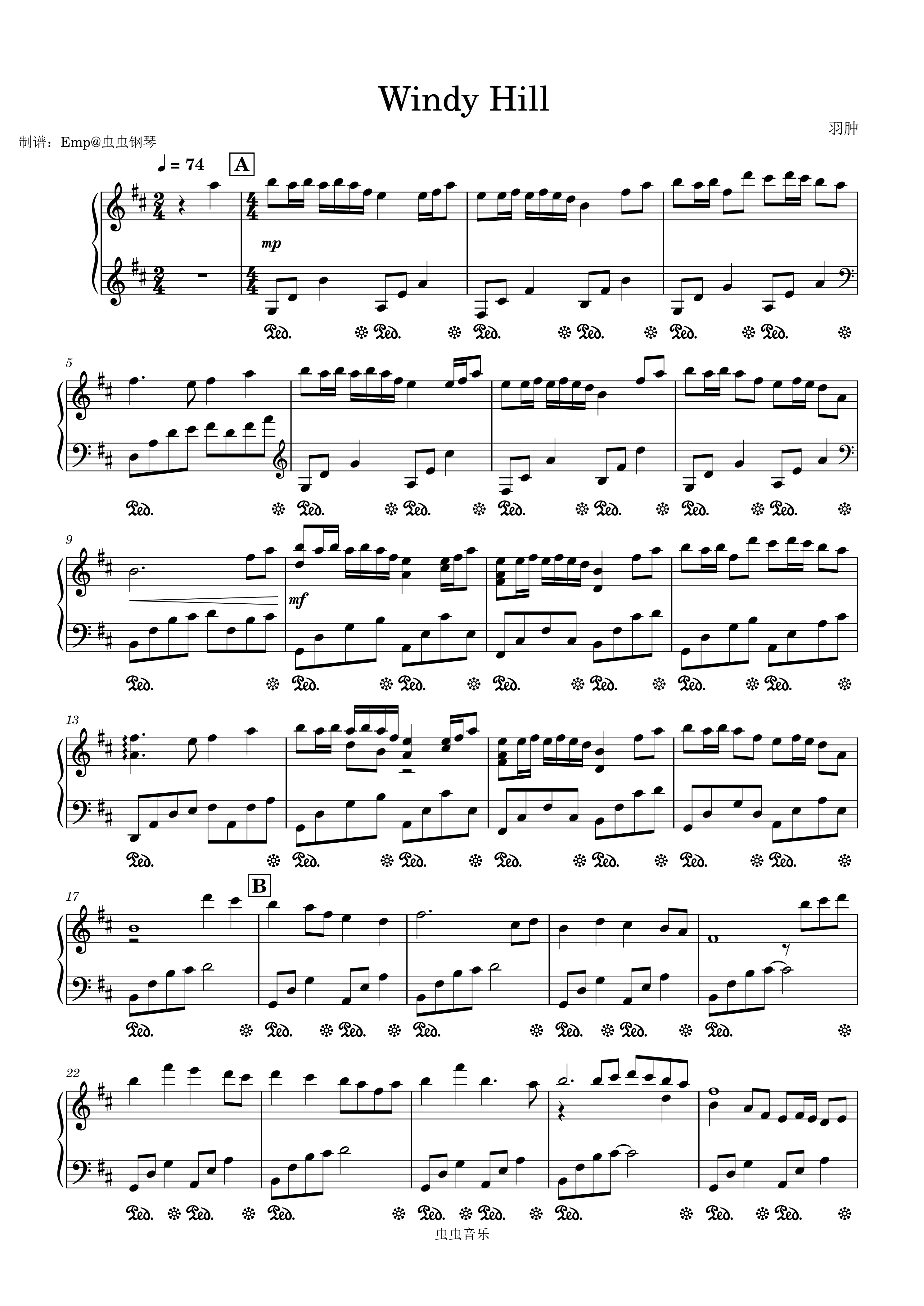 钢琴谱:Windy Hill(风之谷) — 羽肿 (高还原)