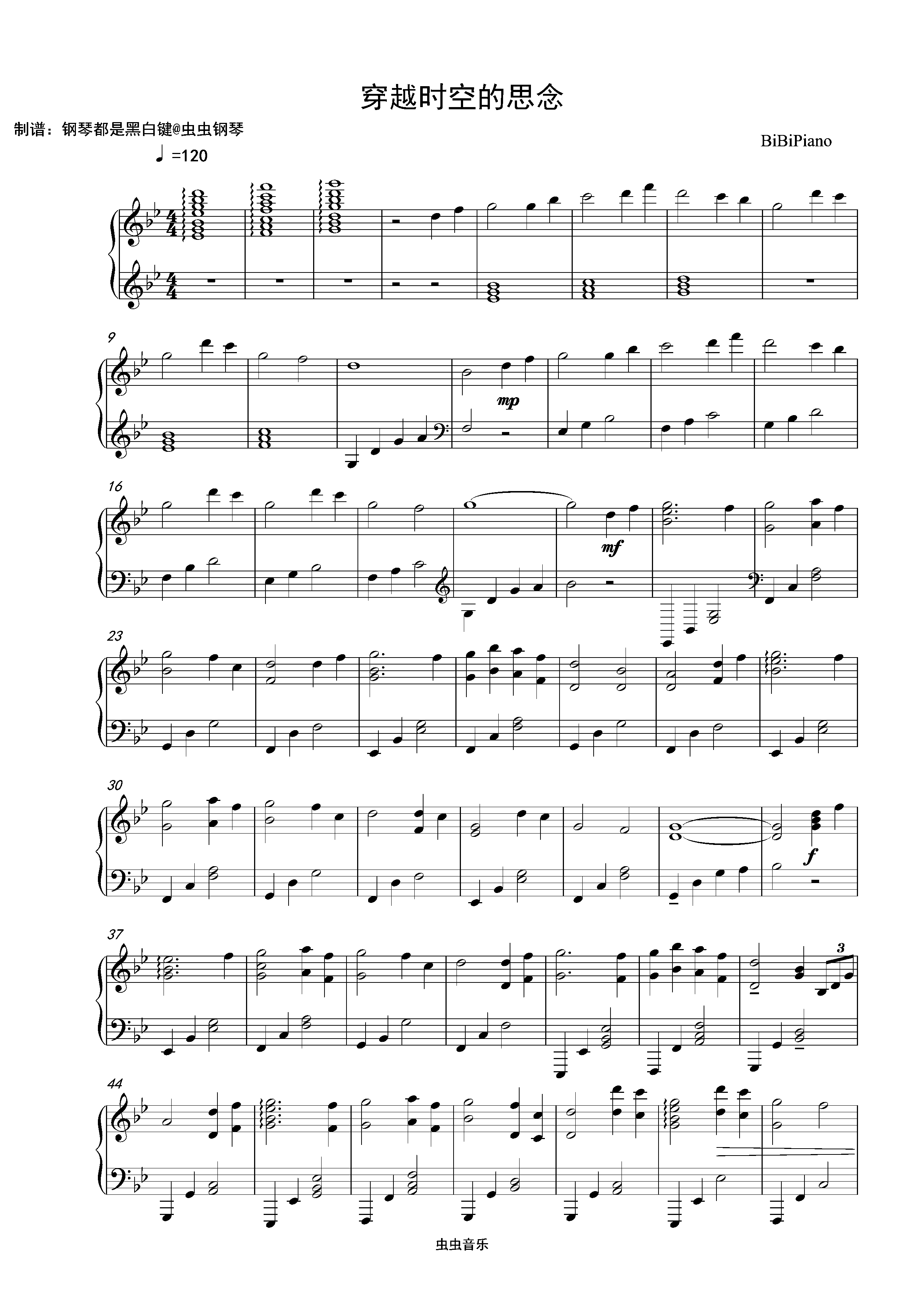 钢琴谱:【BiBiPiano版】穿越时空的思念(温柔治愈)