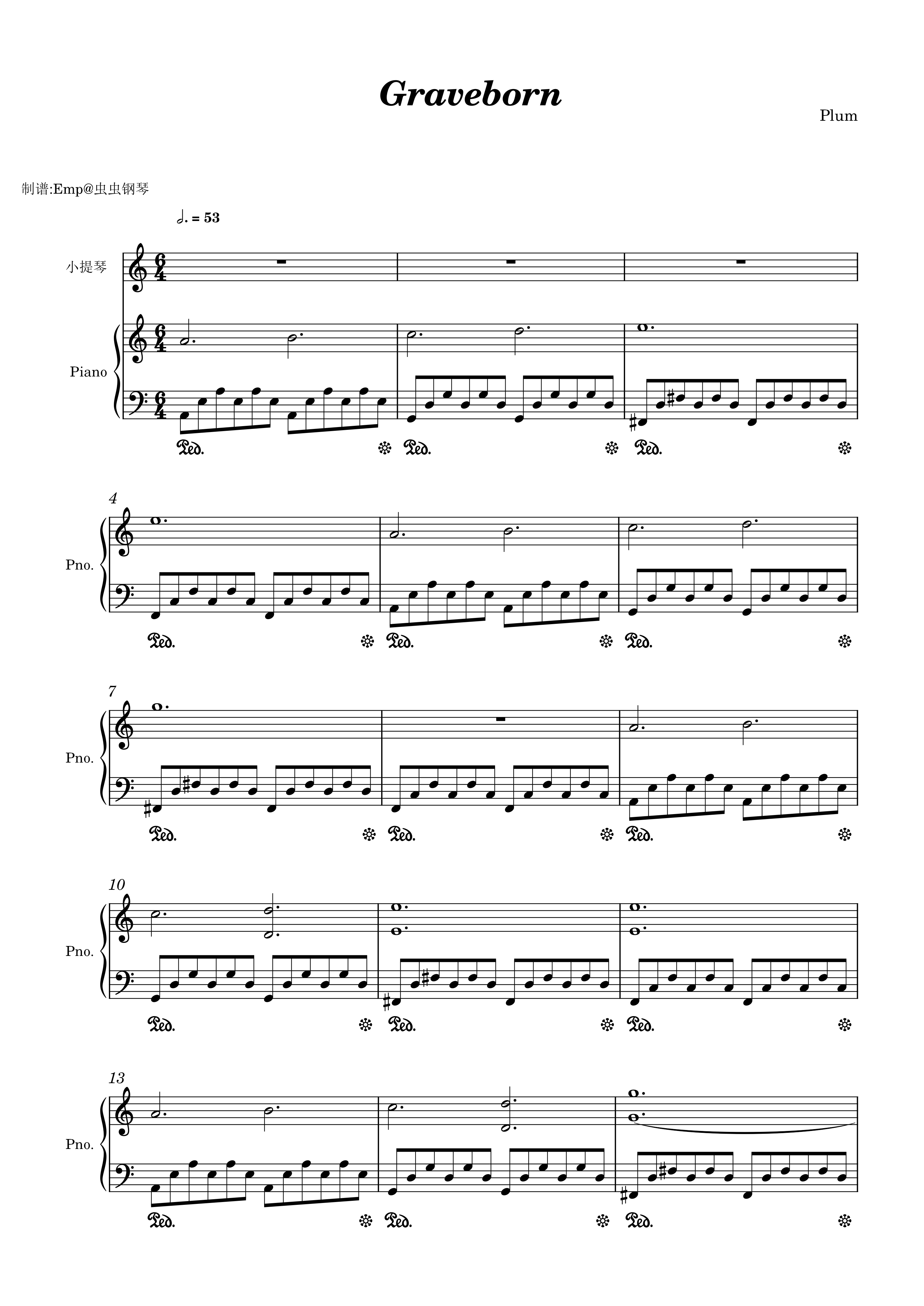 钢琴谱:Graveborn【Plum新曲】— 钢琴+小提琴扒谱
