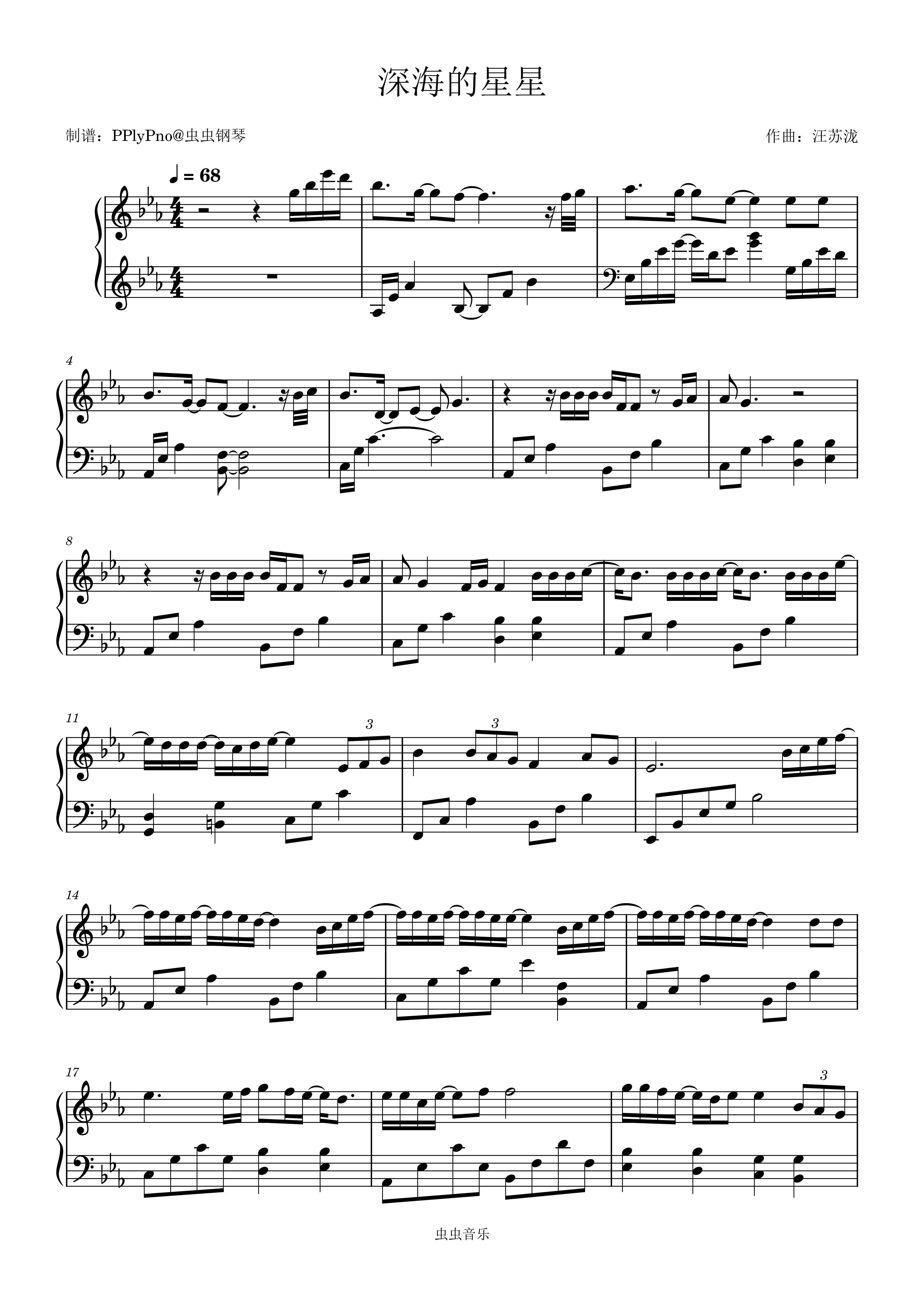 • 再见深海钢琴简谱 C调 数字双手 唐汉霄/王竞