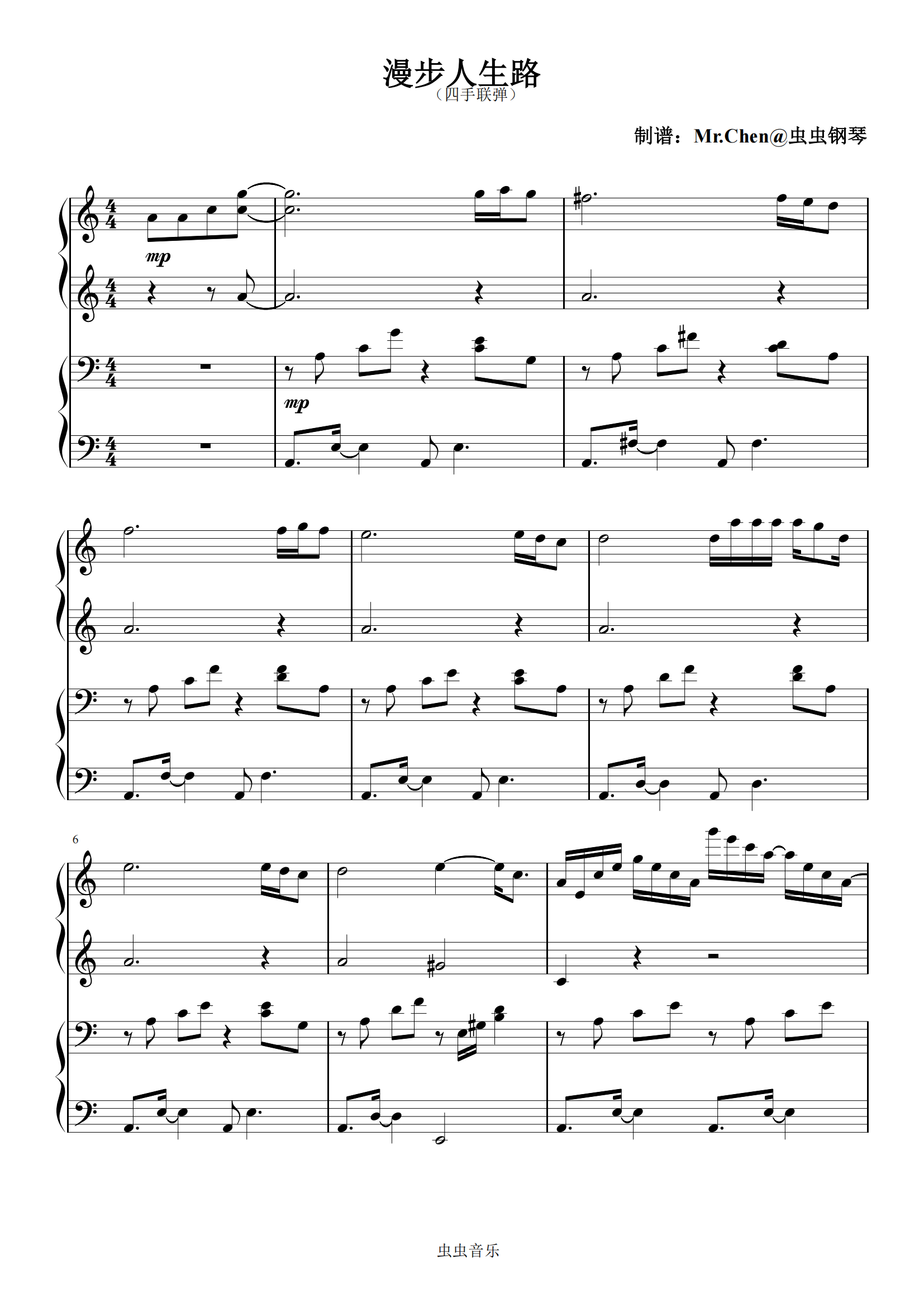 钢琴谱:漫步人生路 (四手联弹)-邓丽君