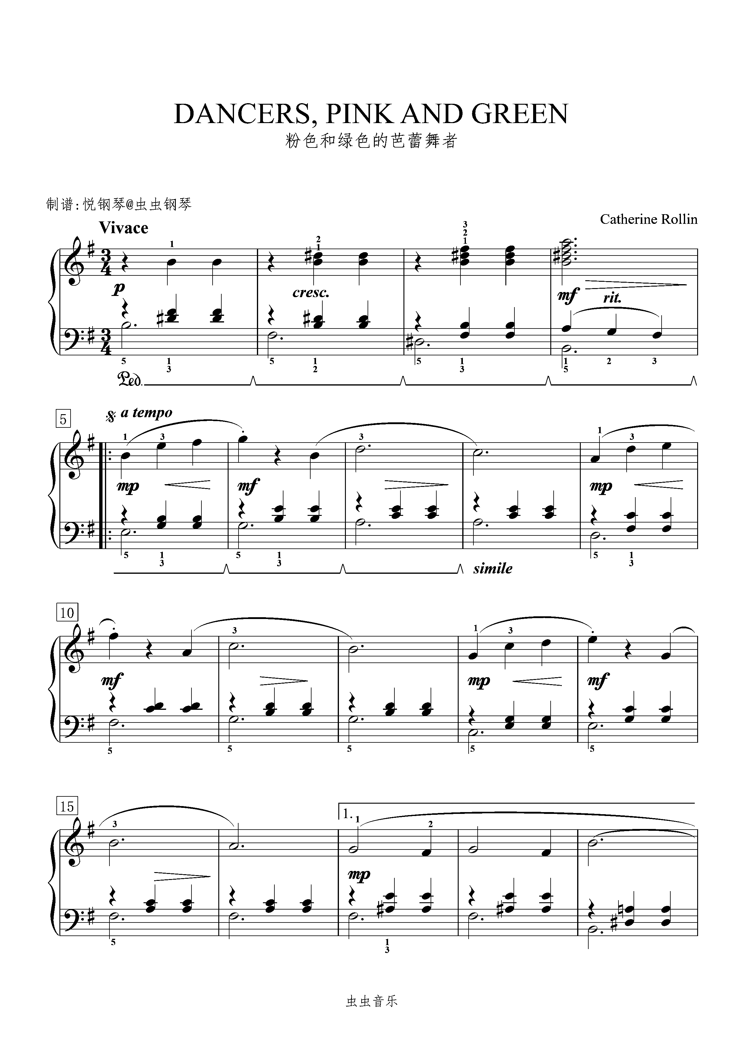 钢琴谱:粉色和绿色的芭蕾舞者/DANCERS, PINK AND GREEN 【欢快】