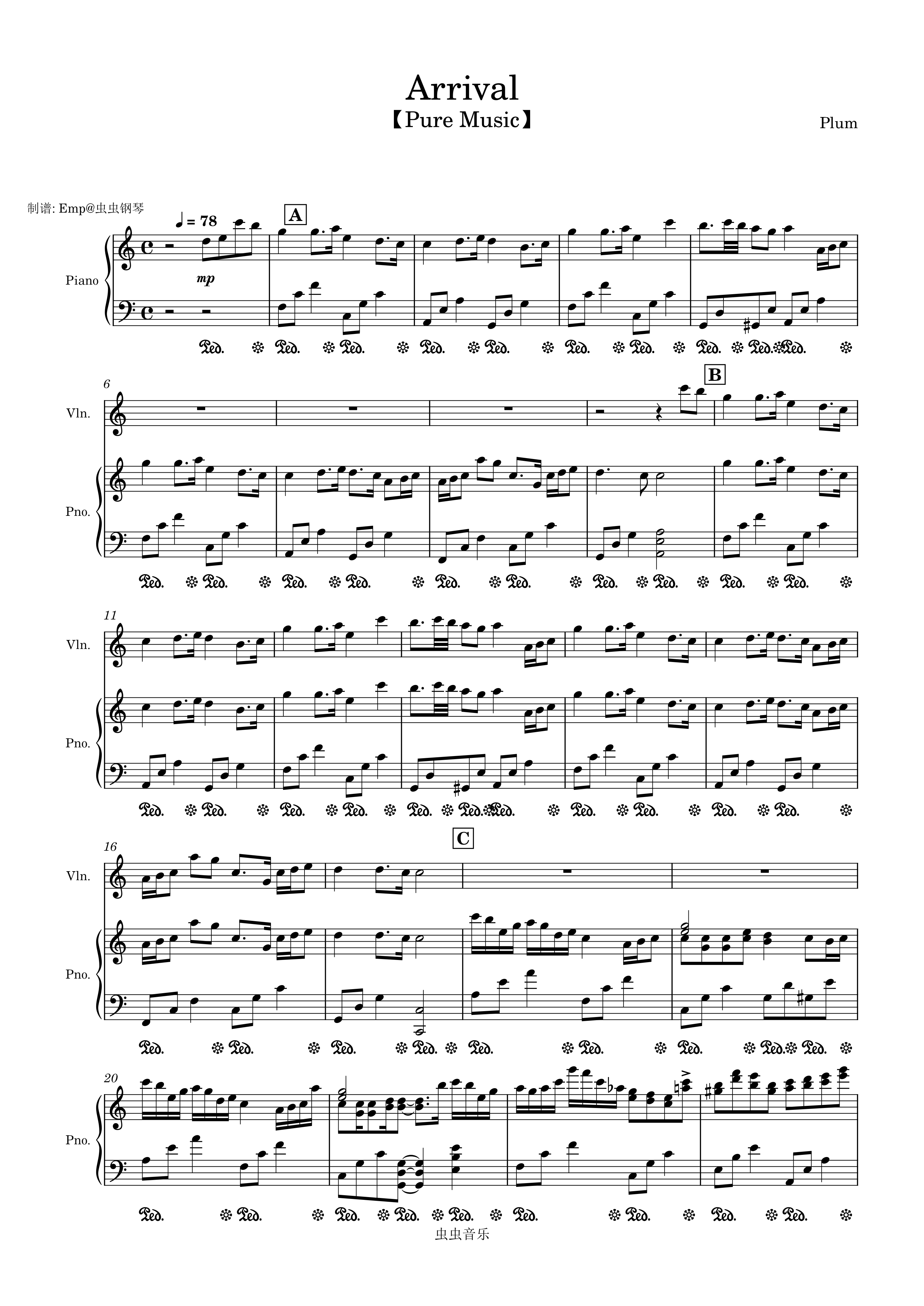 钢琴谱:【纯音乐】Arrival(By Plum) 钢琴+小提琴扒谱分享