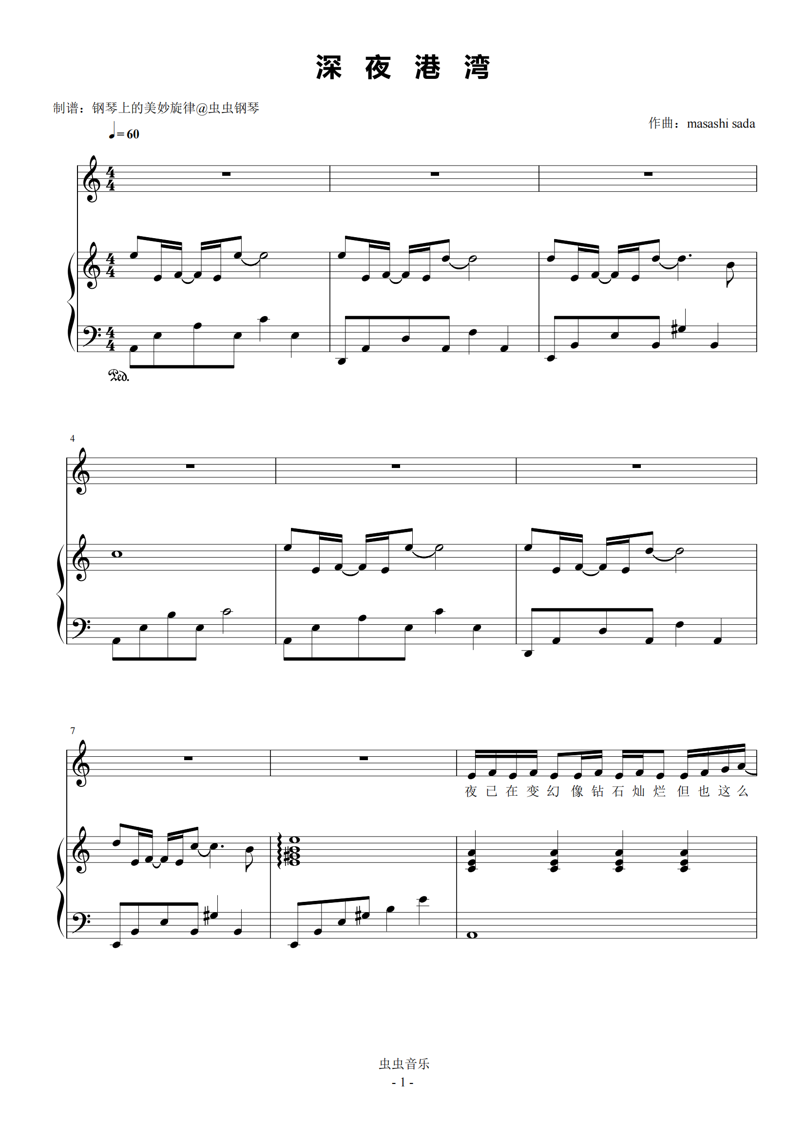 深夜港湾钢琴简谱 数字双手