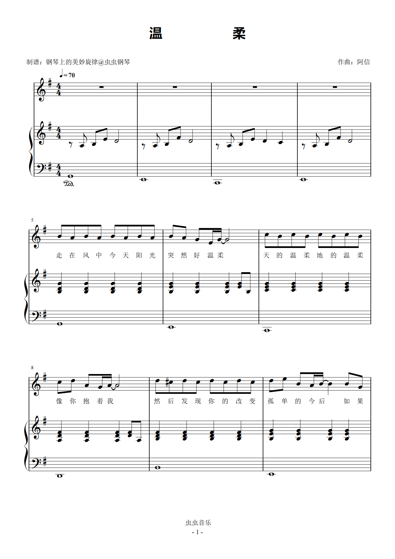 钢琴谱:温柔 简易钢琴弹唱伴奏 带歌词 五月天