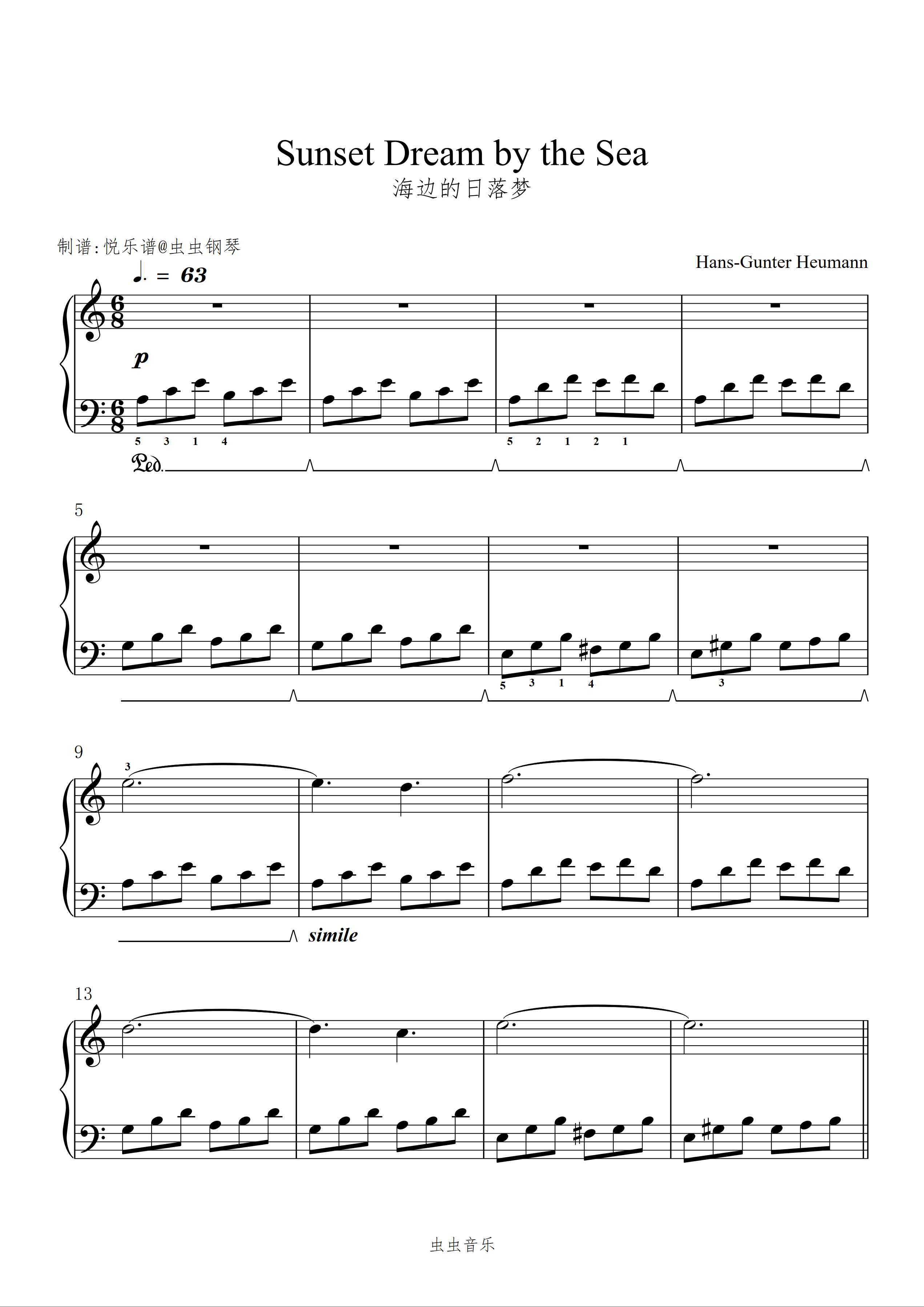 钢琴谱:海边的日落梦/Sunset Dream by the Sea 【惬意】