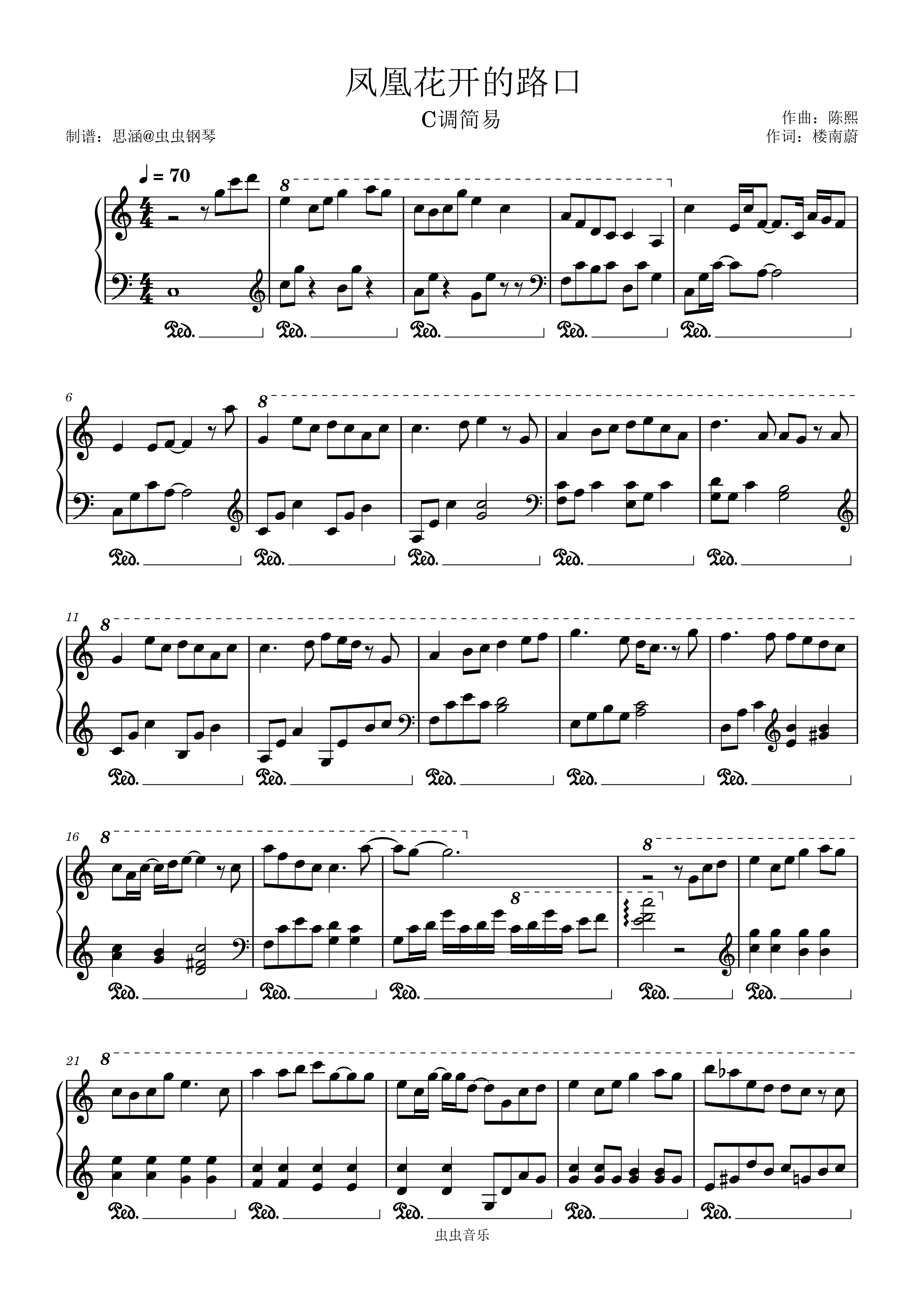 钢琴谱:凤凰花开的路口-C调钢琴精编