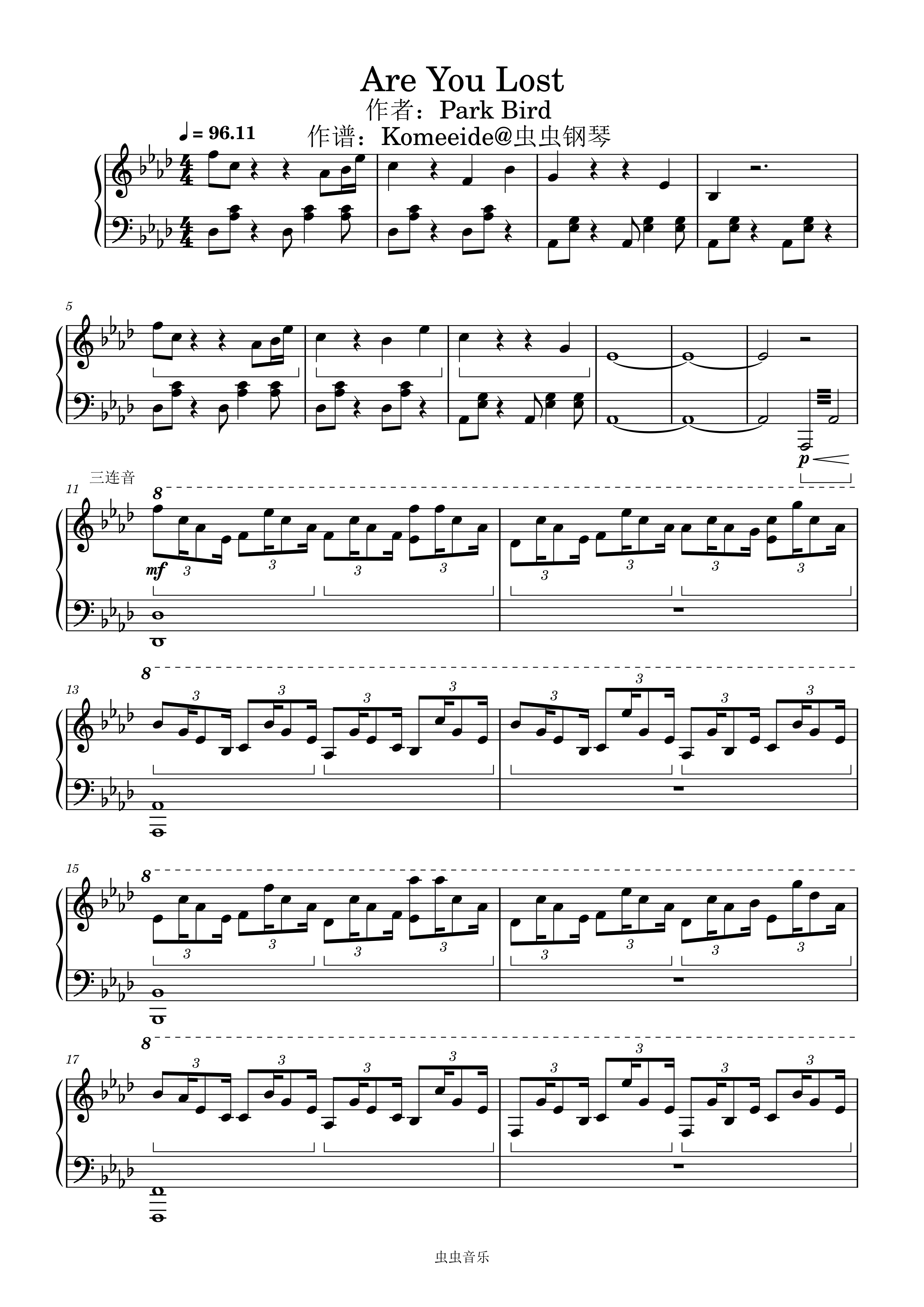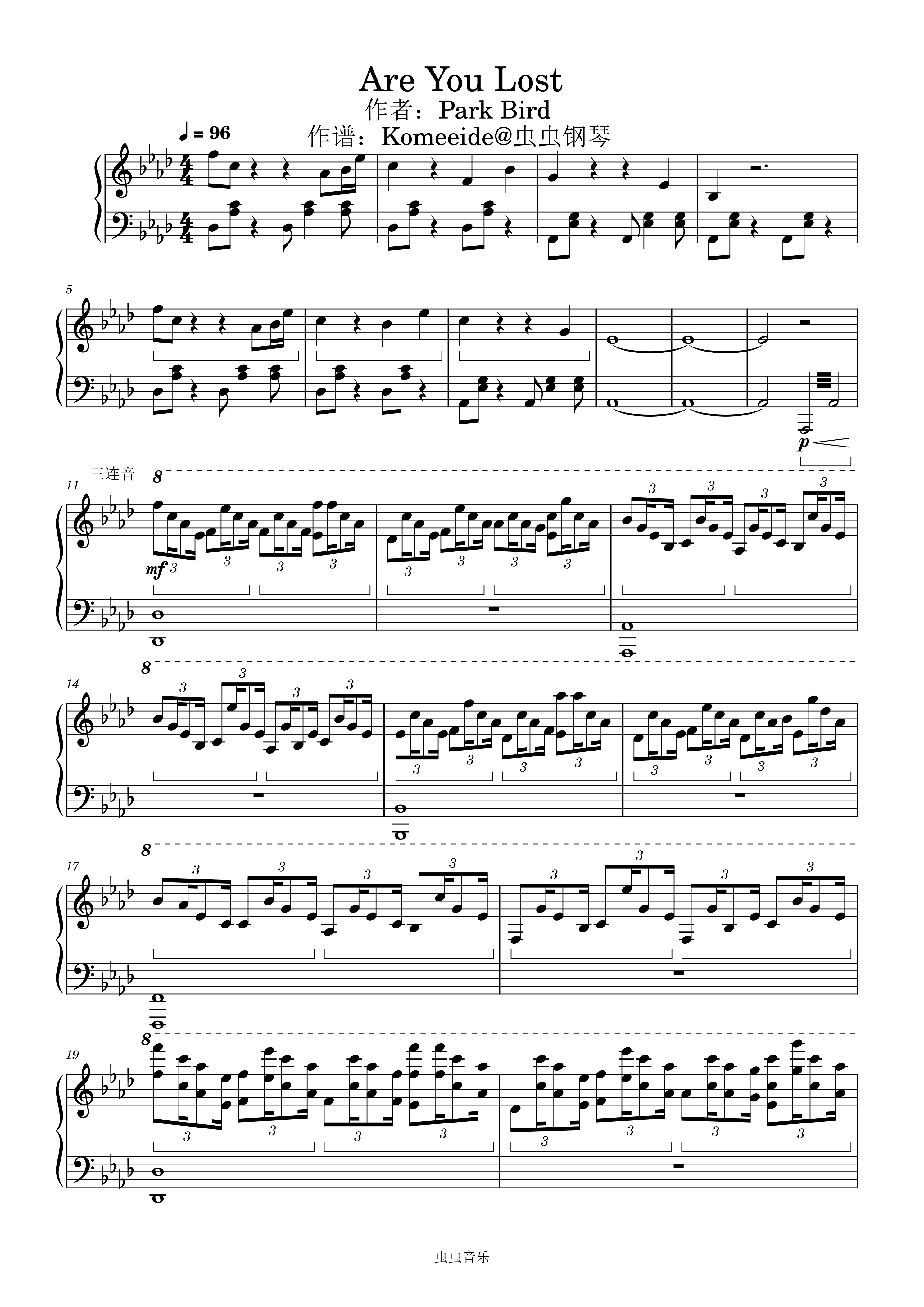 钢琴 Are You Lost - Park Bird (Piano Solo)作谱:Komeeide Ab/f 五线谱 钢琴谱
