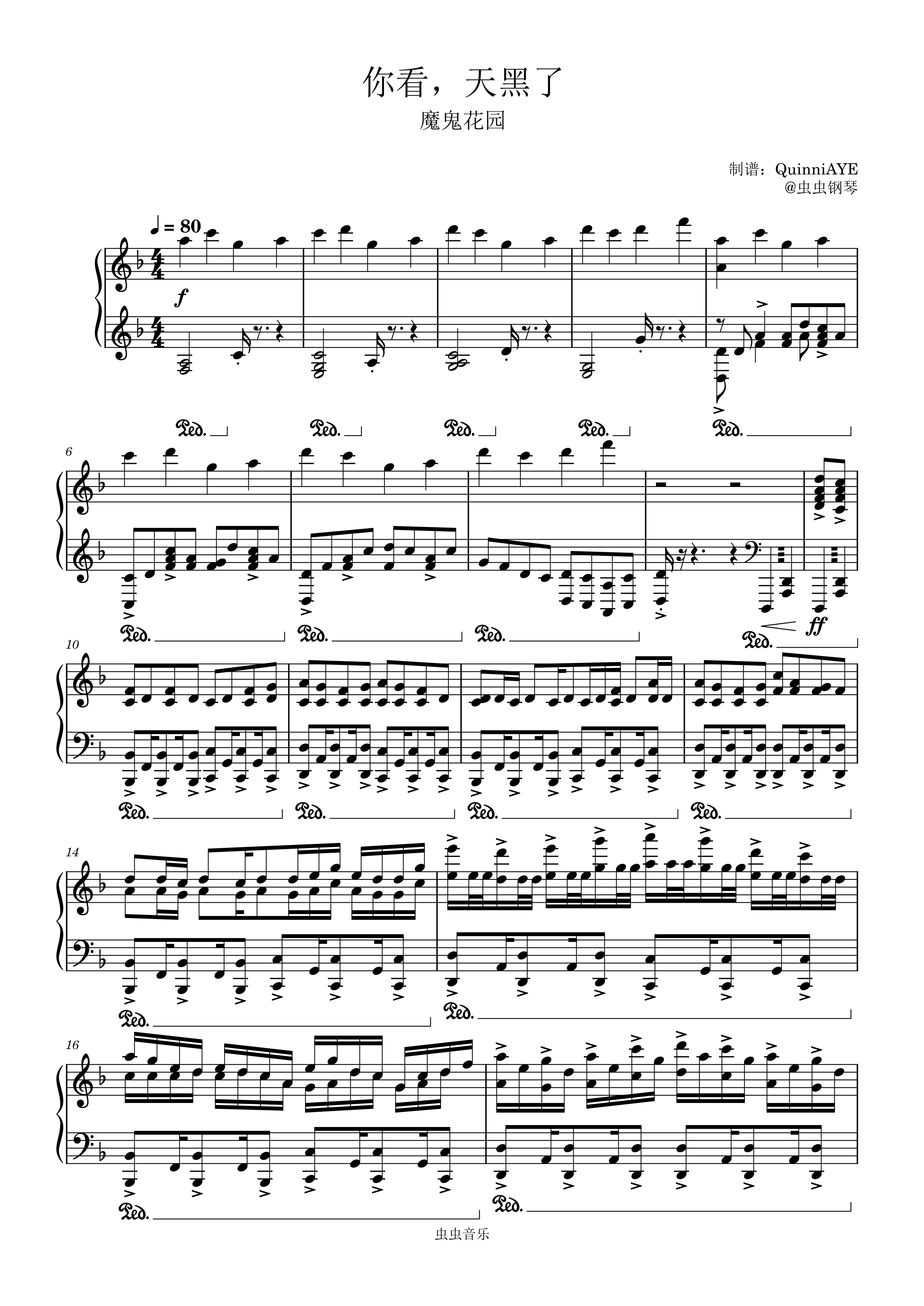 钢琴谱:你看,天黑了【钢琴爆燃改编】-魔鬼花园