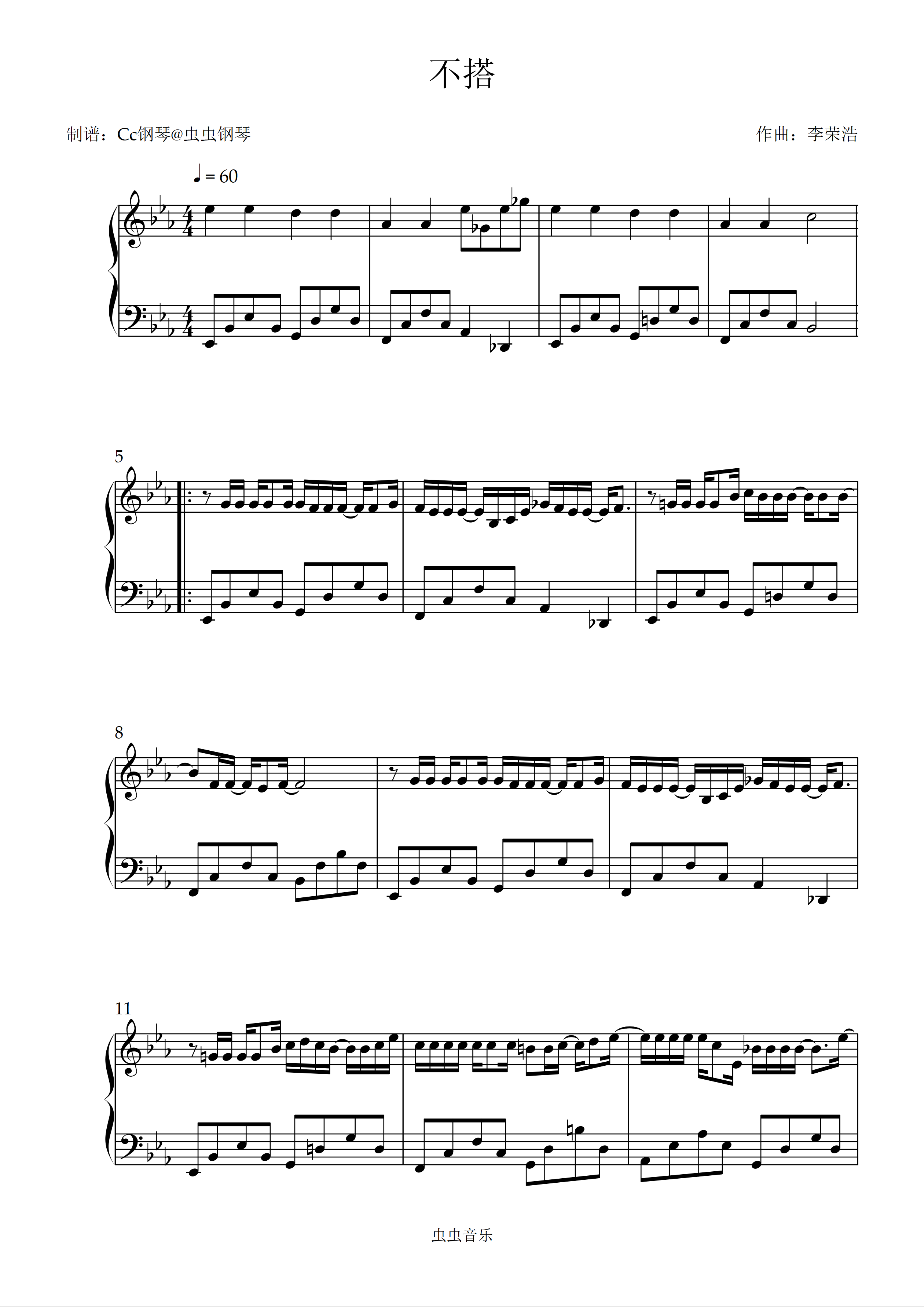 • 我不愿 让你一个人钢琴简谱 G调 数字双手