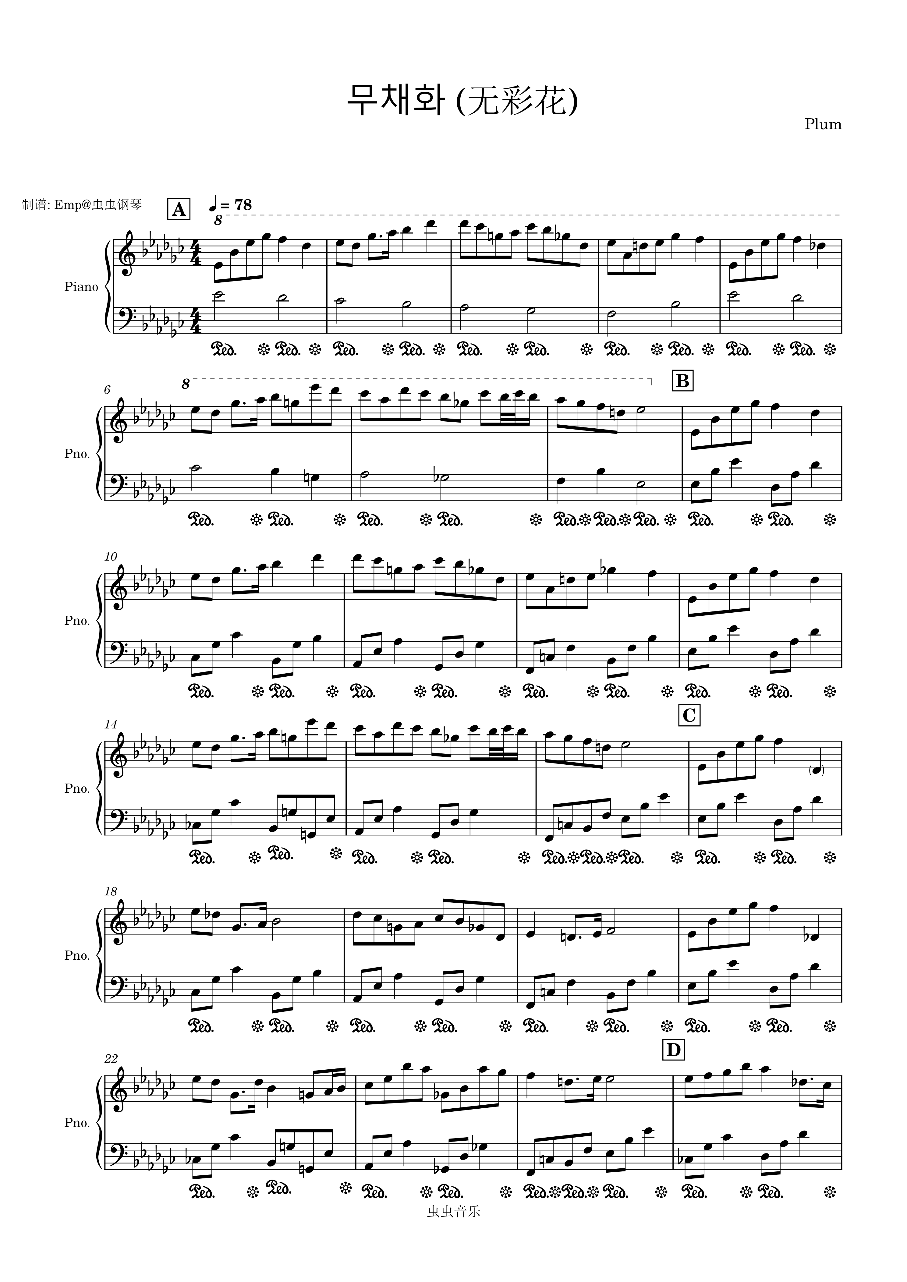 钢琴谱:Plum新曲 무채화 (无彩花) 钢琴+小提琴扒谱分享