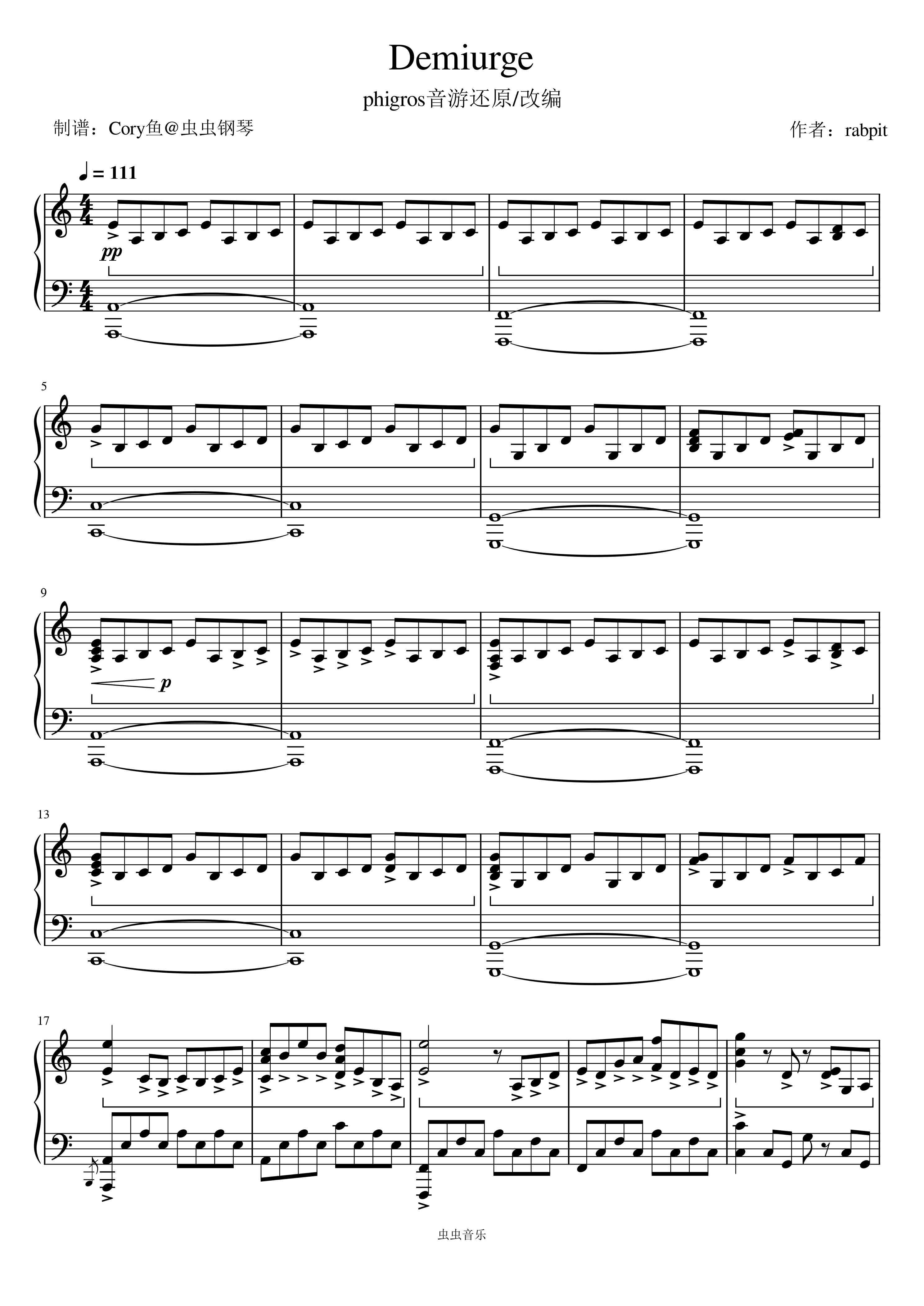 钢琴谱:《demiurge》音游phigros 超燃改编