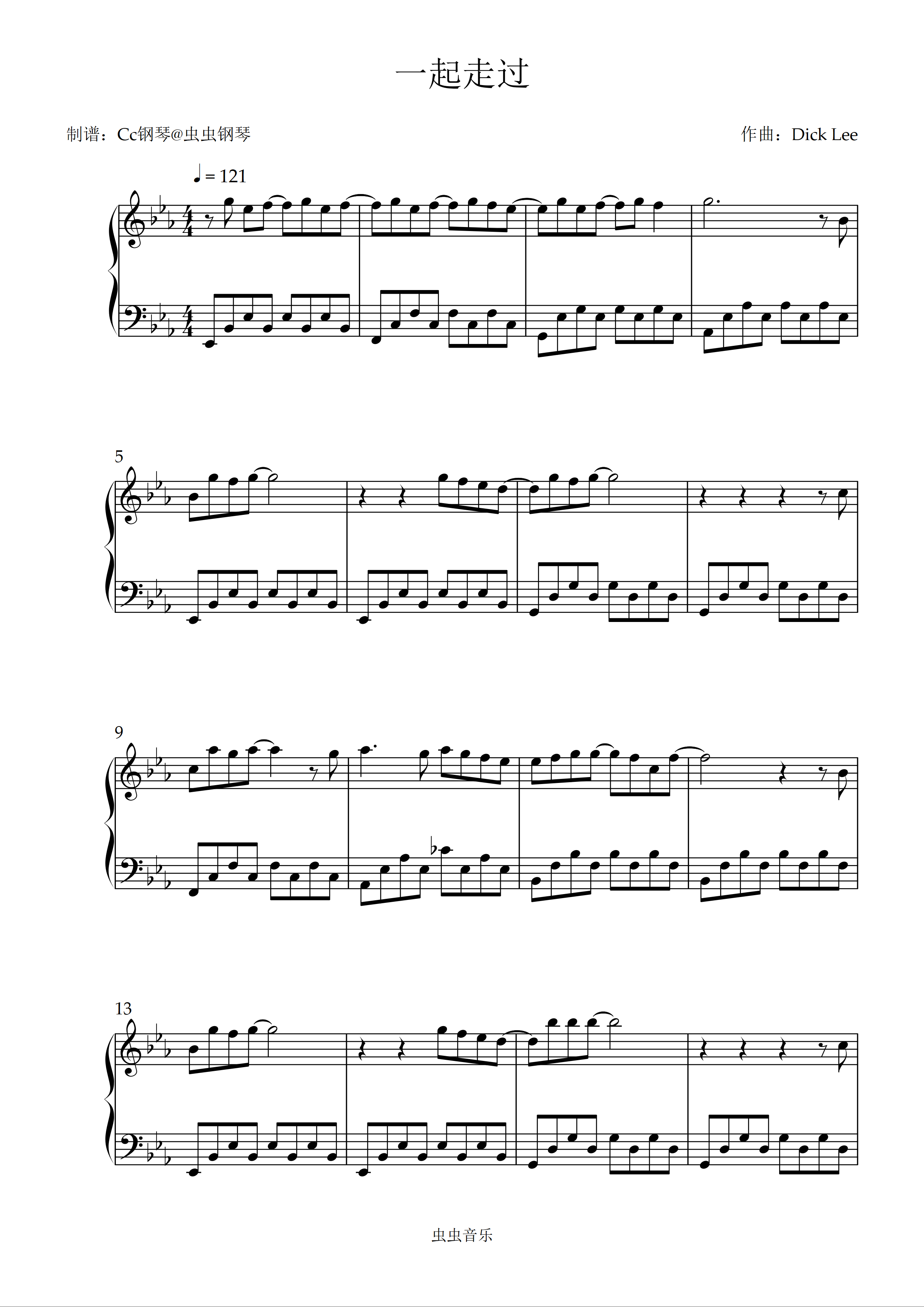 • 一起走过的日子钢琴简谱 e调 数字双手 小美