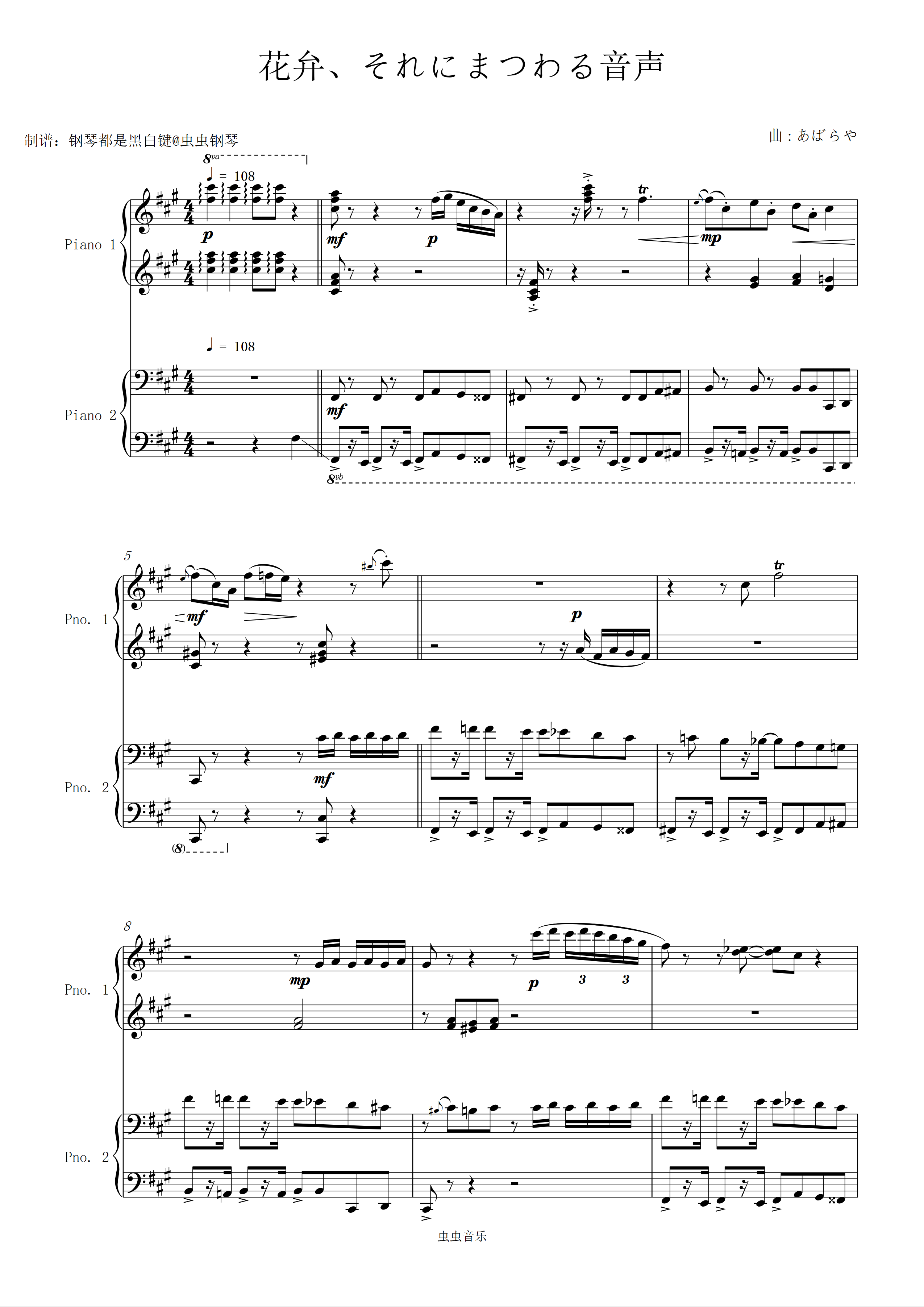 钢琴谱:【初音ミク】花瓣、与之相关的声音/花弁、それにまつわる音声