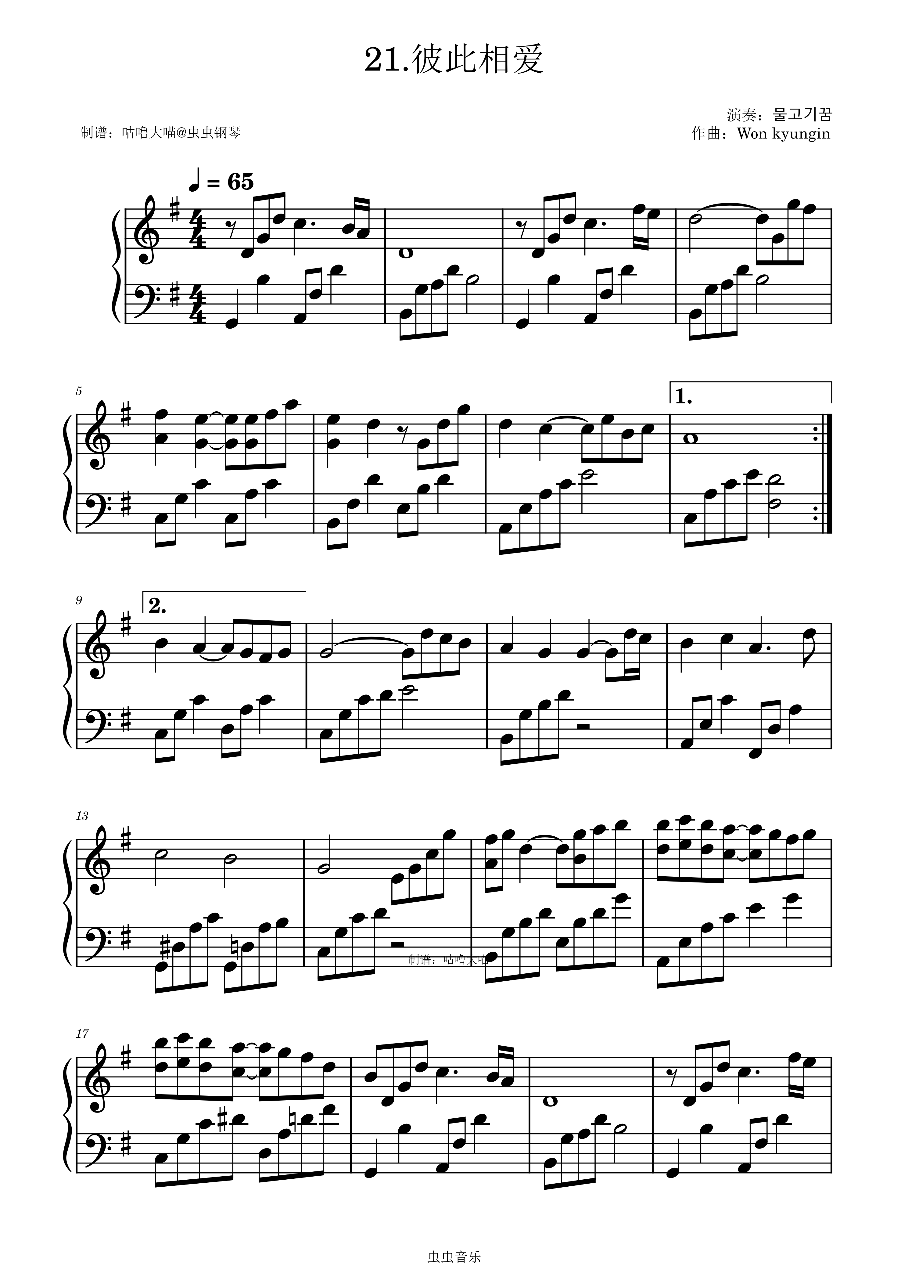 钢琴谱:彼此相爱-물고기꿈