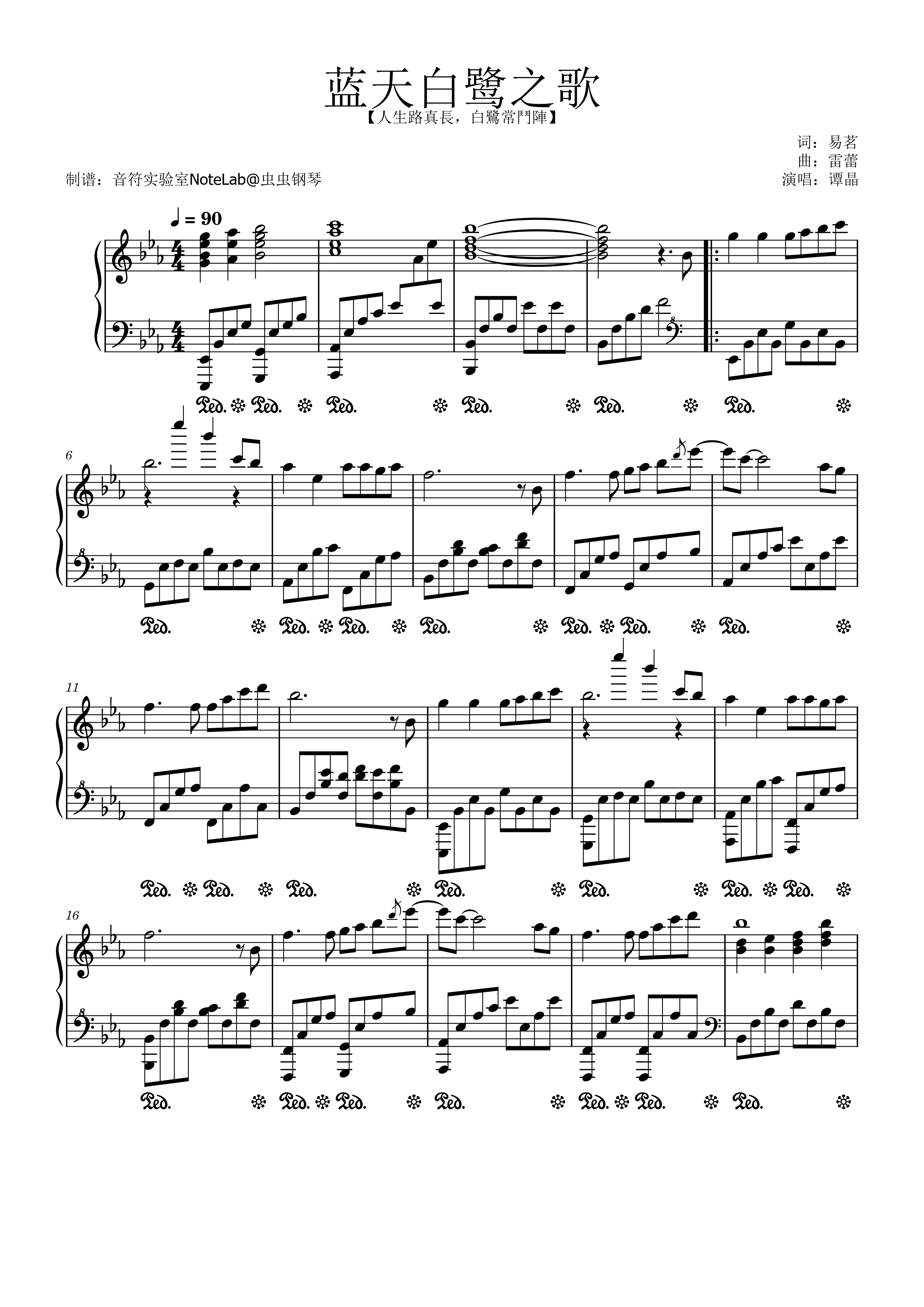 蓝天白鹭之歌钢琴简谱 数字双手 易茗